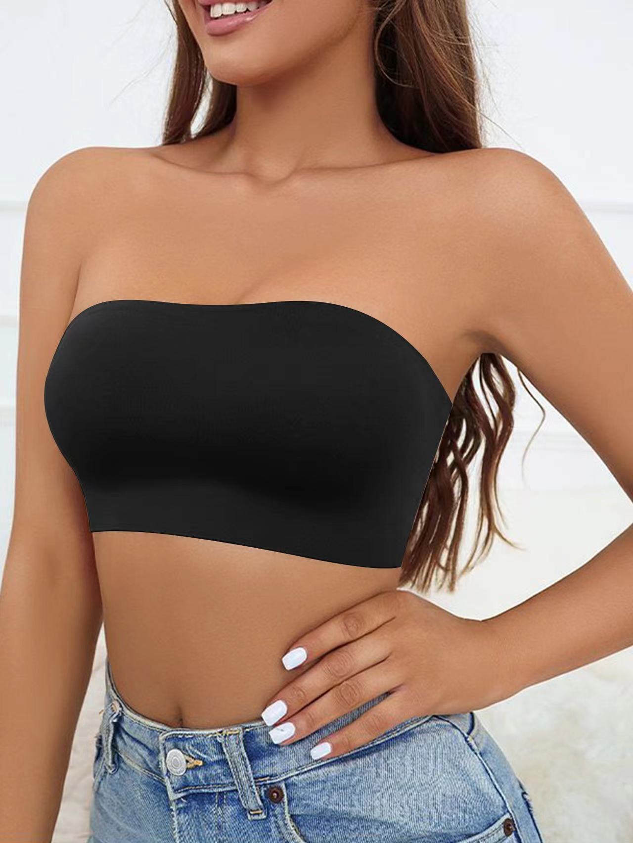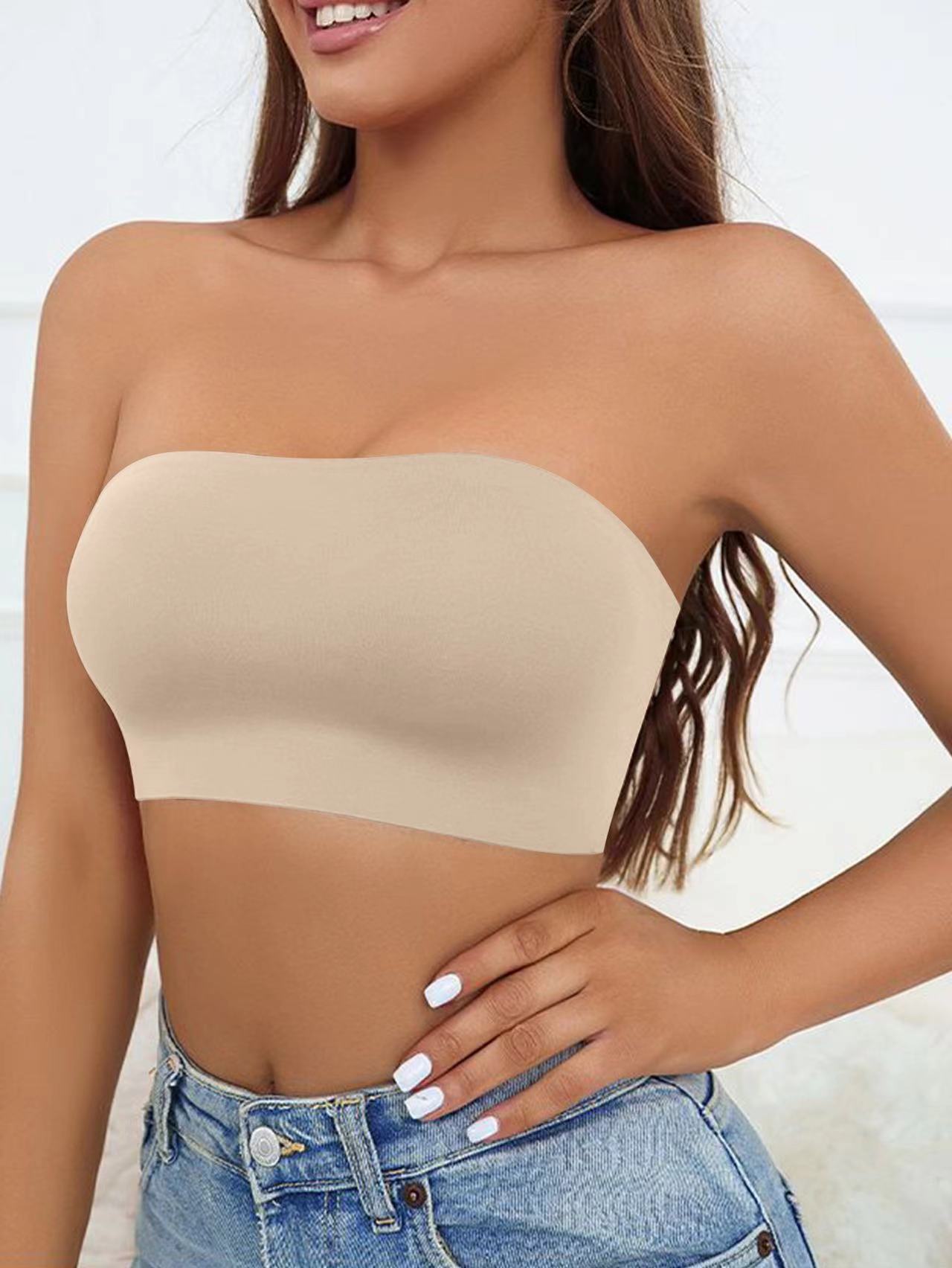 Transfronterizos de tamaño grande sin marcas de seda de hielo para el pecho de verano delgado transpirable sexy para reunir ropa interior de mujer sin correa de hombro