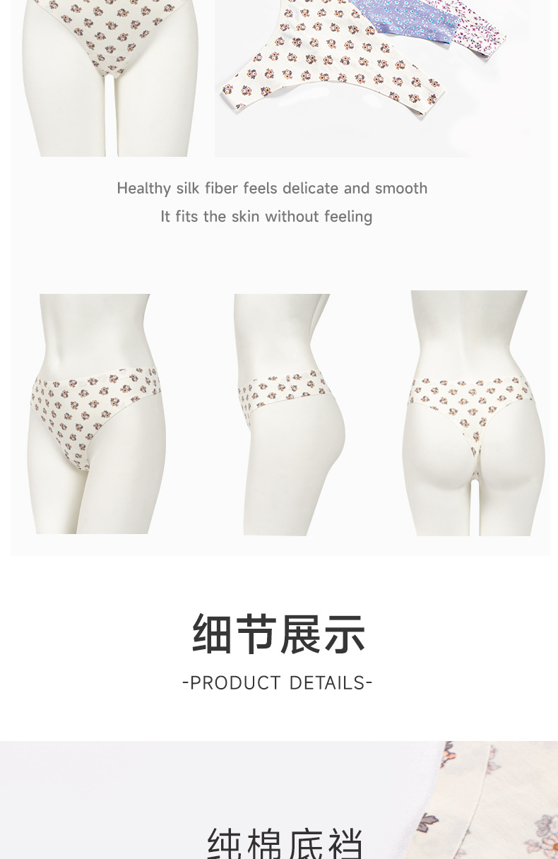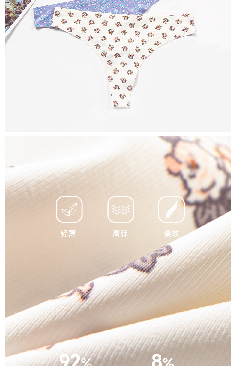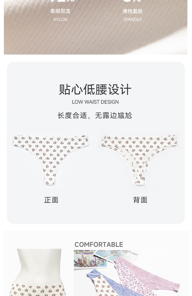 Comercio exterior transfronterizo Fábrica Ropa interior europea y americana de nylon adhesivo para mujer impreso transpirable de secado rápido cintura baja Seda de hielo Tanga sin costuras
