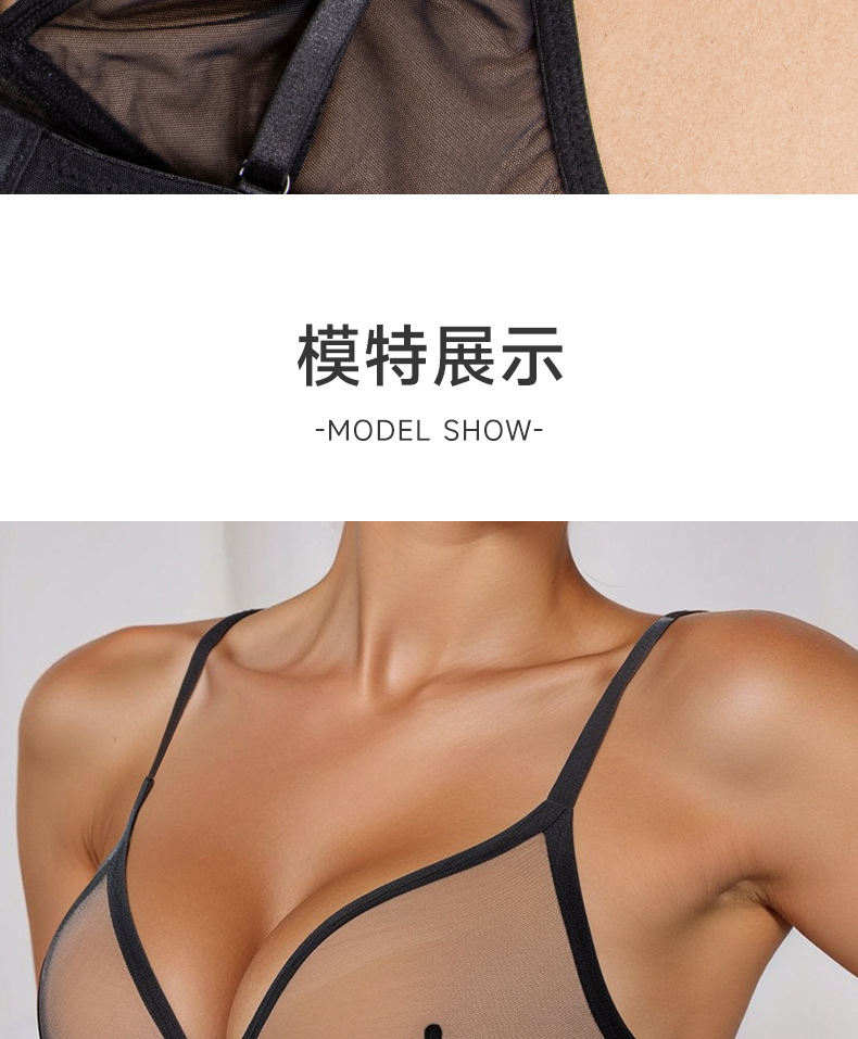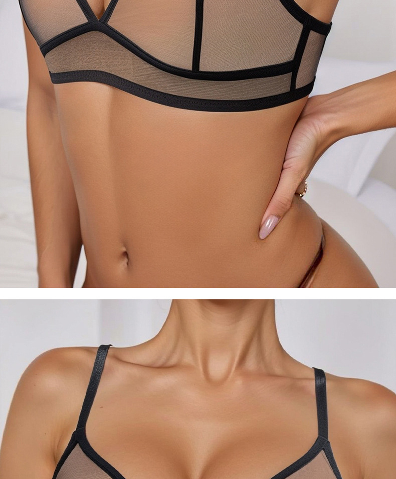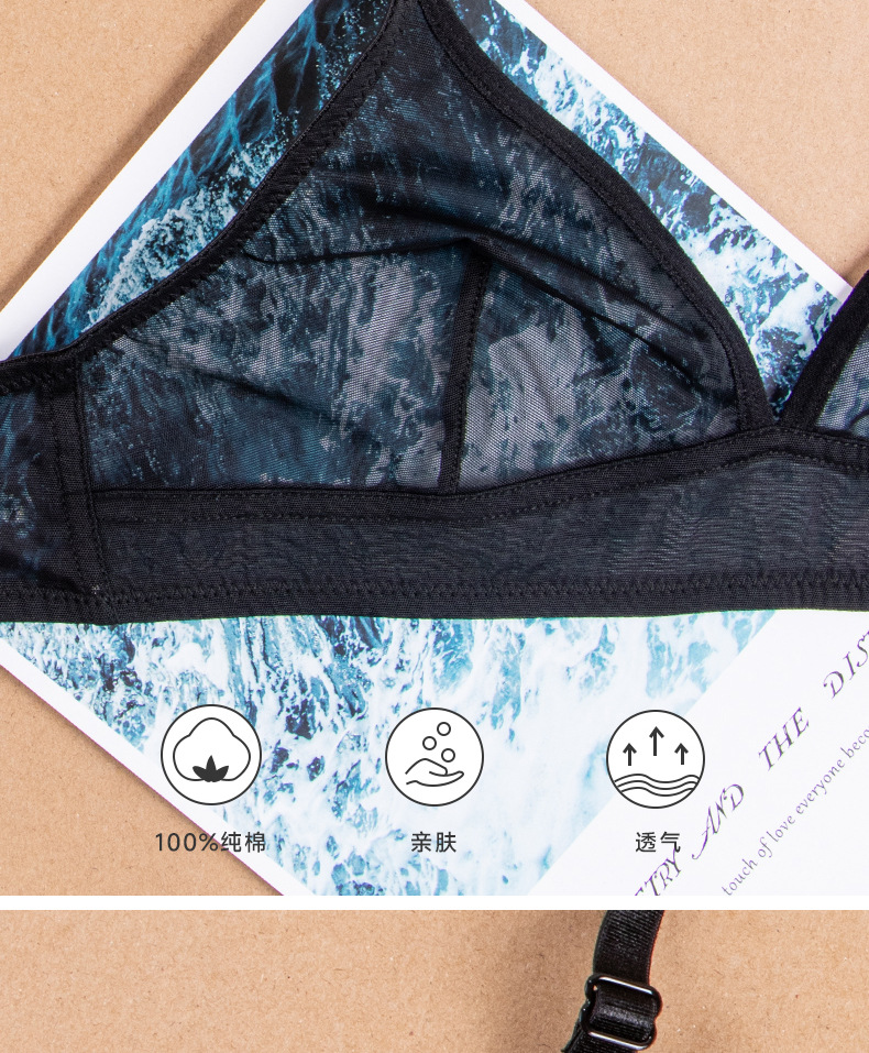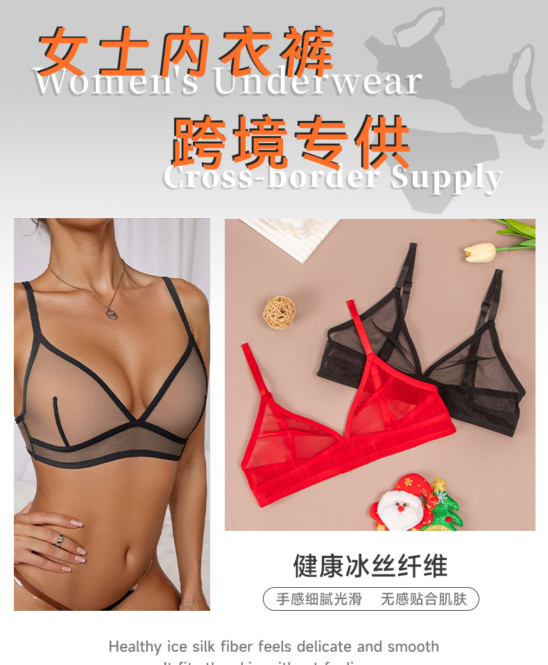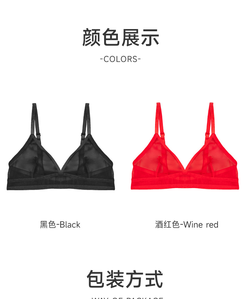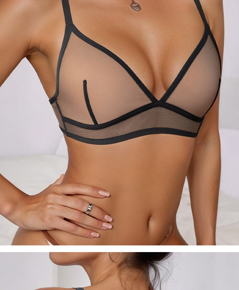 Europa y los Estados Unidos al por mayor malla transparente ropa interior de mujer extranjera delgada encaje bra sin anillo de acero bra de copa triangular