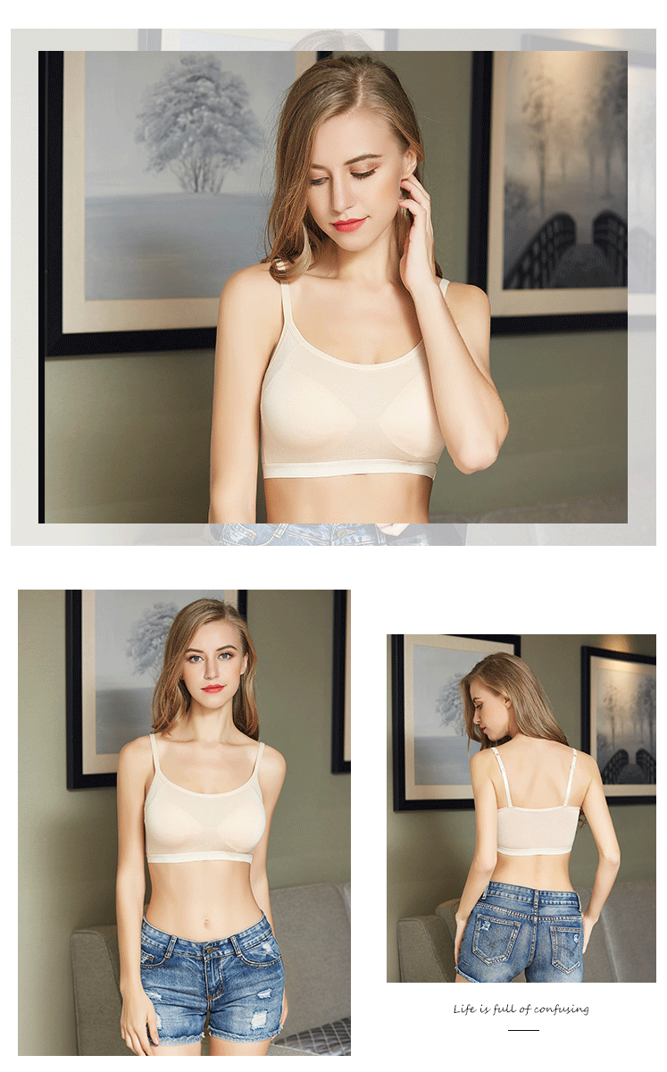 Copa de una pieza inalámbrica envuelta en el pecho ropa interior europea y americana de las mujeres almohadilla de pecho fijo belleza espalda camisola sujetador de las mujeres