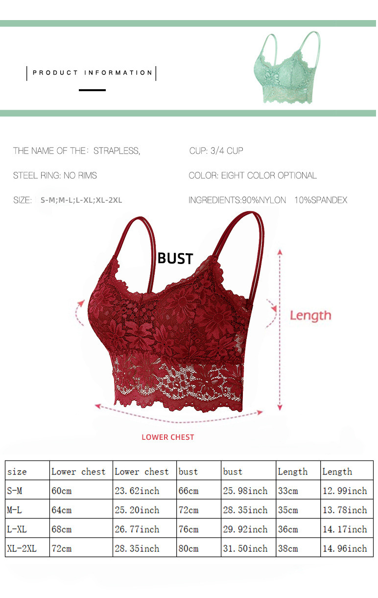 Comercio exterior extra grande versión inalámbrica desmontable pecho pad mujeres europeas y americanas encaje camisola base envuelto pecho