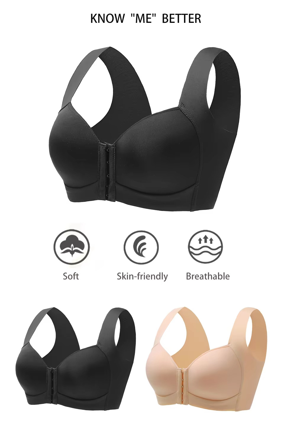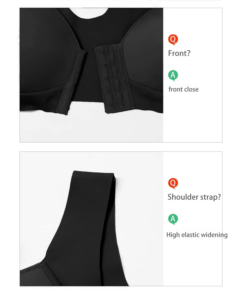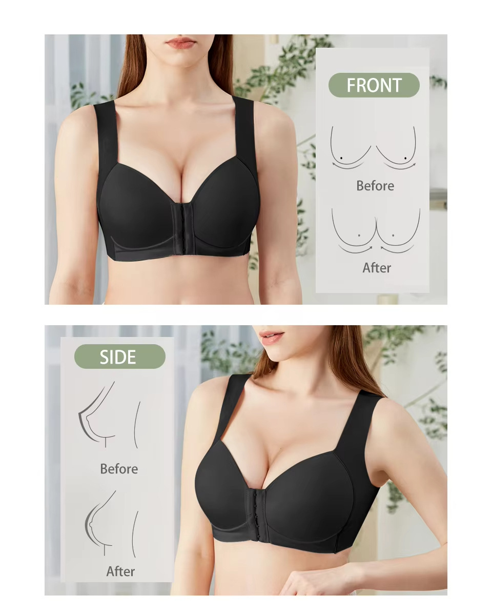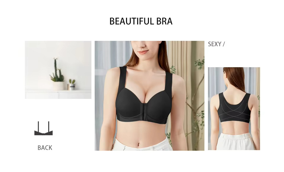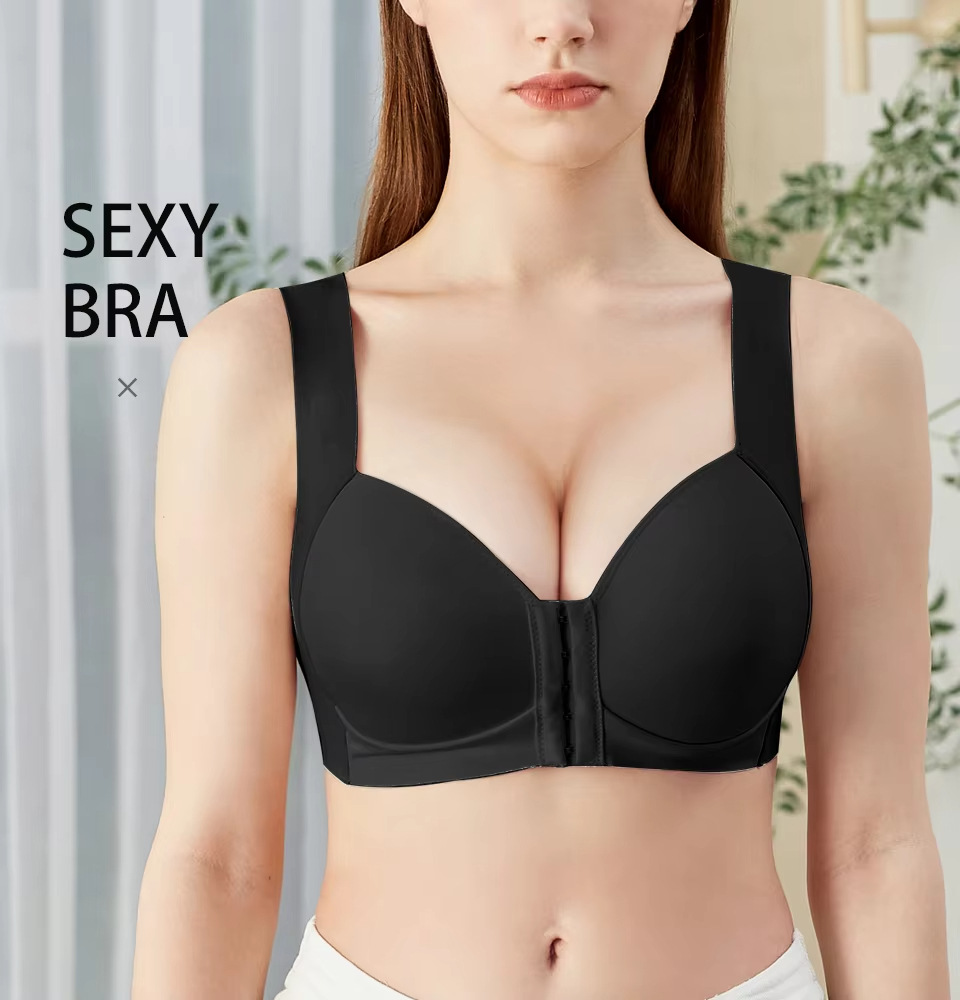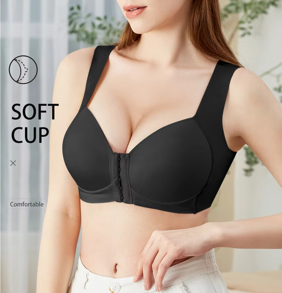 Bra de mujer gran taza delgada taza lisa ajustable tipo de botón delantero de mujer sin marcas cómodo soporte de espalda bra