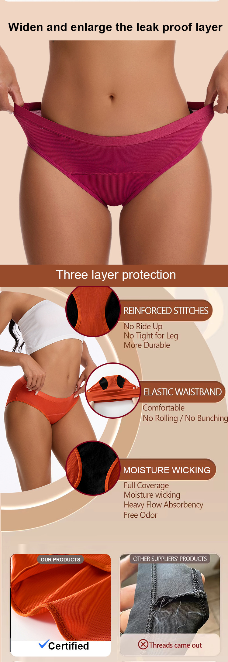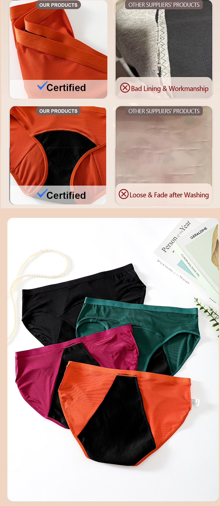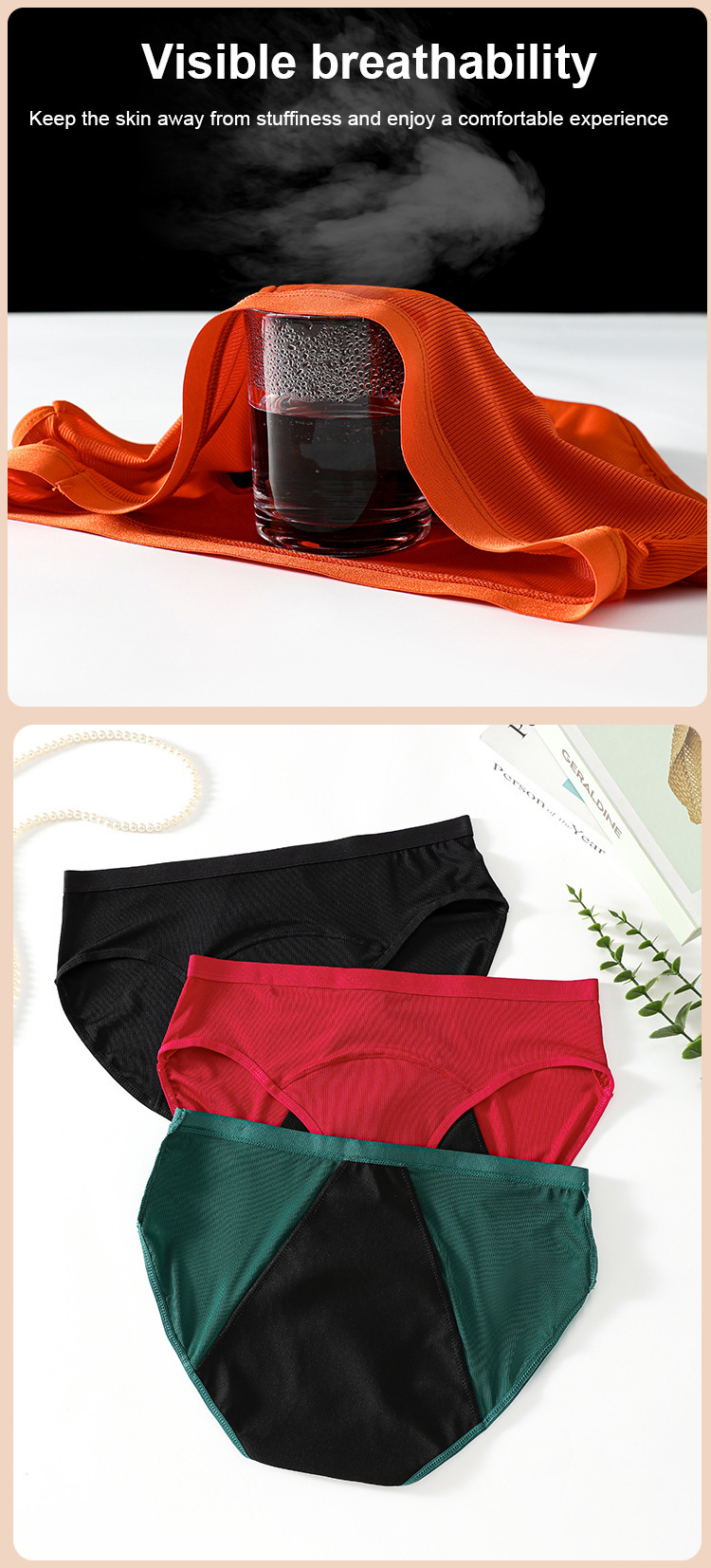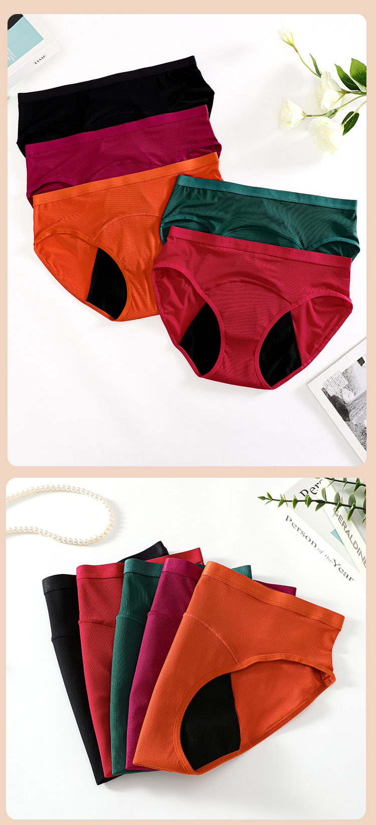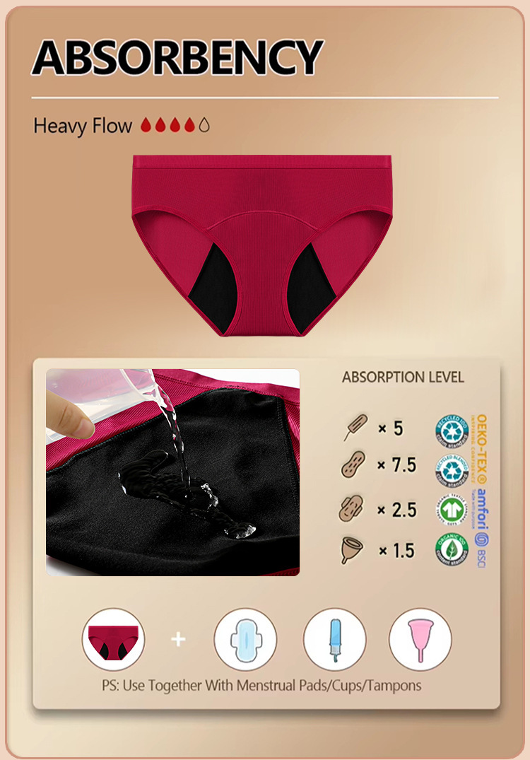 Pantalones fisiológicos femeninos de hilo europeos y americanos transfronterizos, a prueba de fugas, recolección lateral, ropa interior menstrual, calzoncillos fisiológicos de gran flujo al por mayor