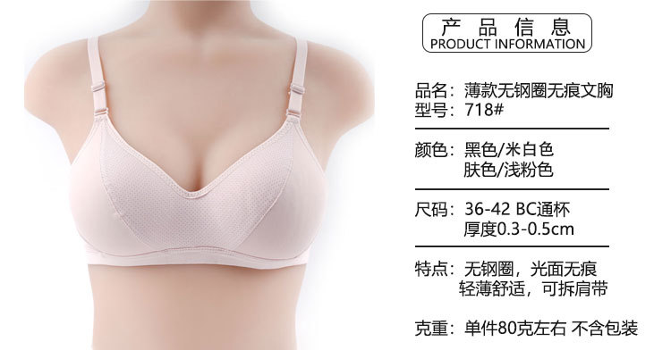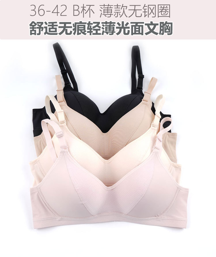 Fábrica de stock sin anillo de acero sujetador ropa interior damas suave y ligera cómodos sujetador simple B taza