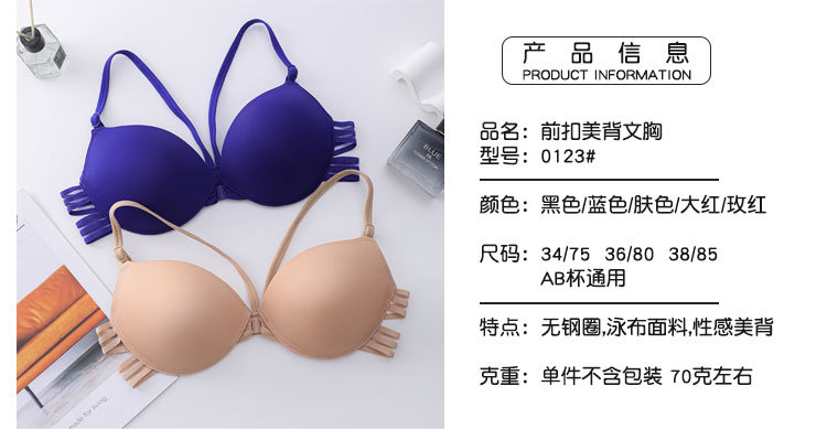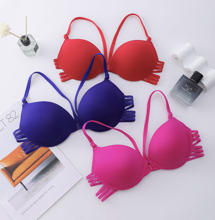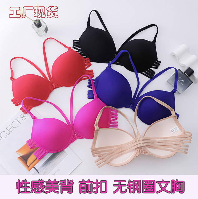 Inventario sin anillo de acero sujetador de botón delantero menos femenino sentido cruzado belleza de espalda ropa interior lisa sin marcas de soporte superior sujetador de verano