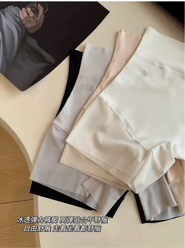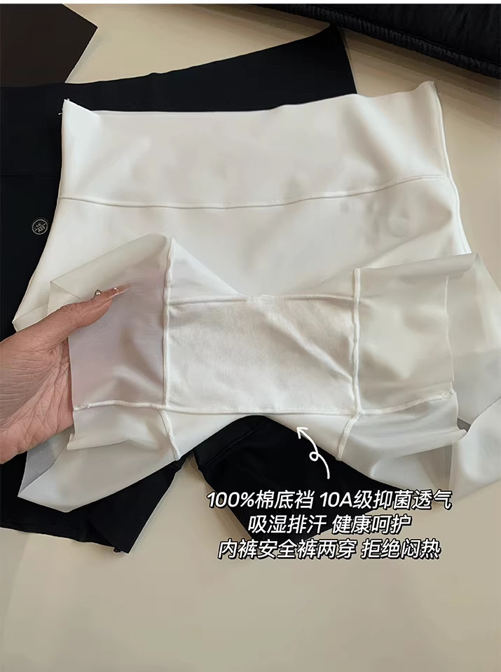 Leggings sin rizos tres en uno sin costuras, pantalones de cintura alta, glúteos y barriga, bragas de seda de hielo, pantalones de seguridad anti-luz para mujer