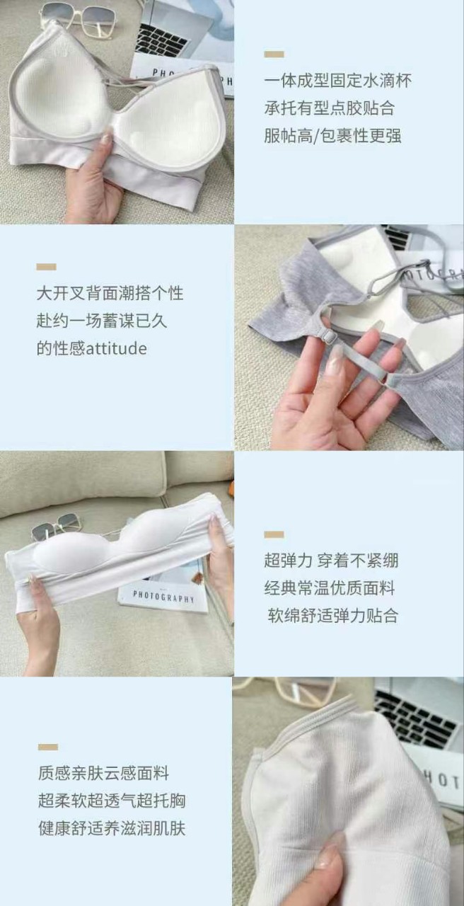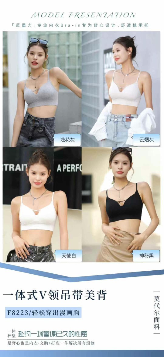 8223 coreano ins pechos pequeños ligeramente reunidos sexy ropa interior de mujer en V profunda nuevo producto color sólido tirantes finos sin anillo de acero niña