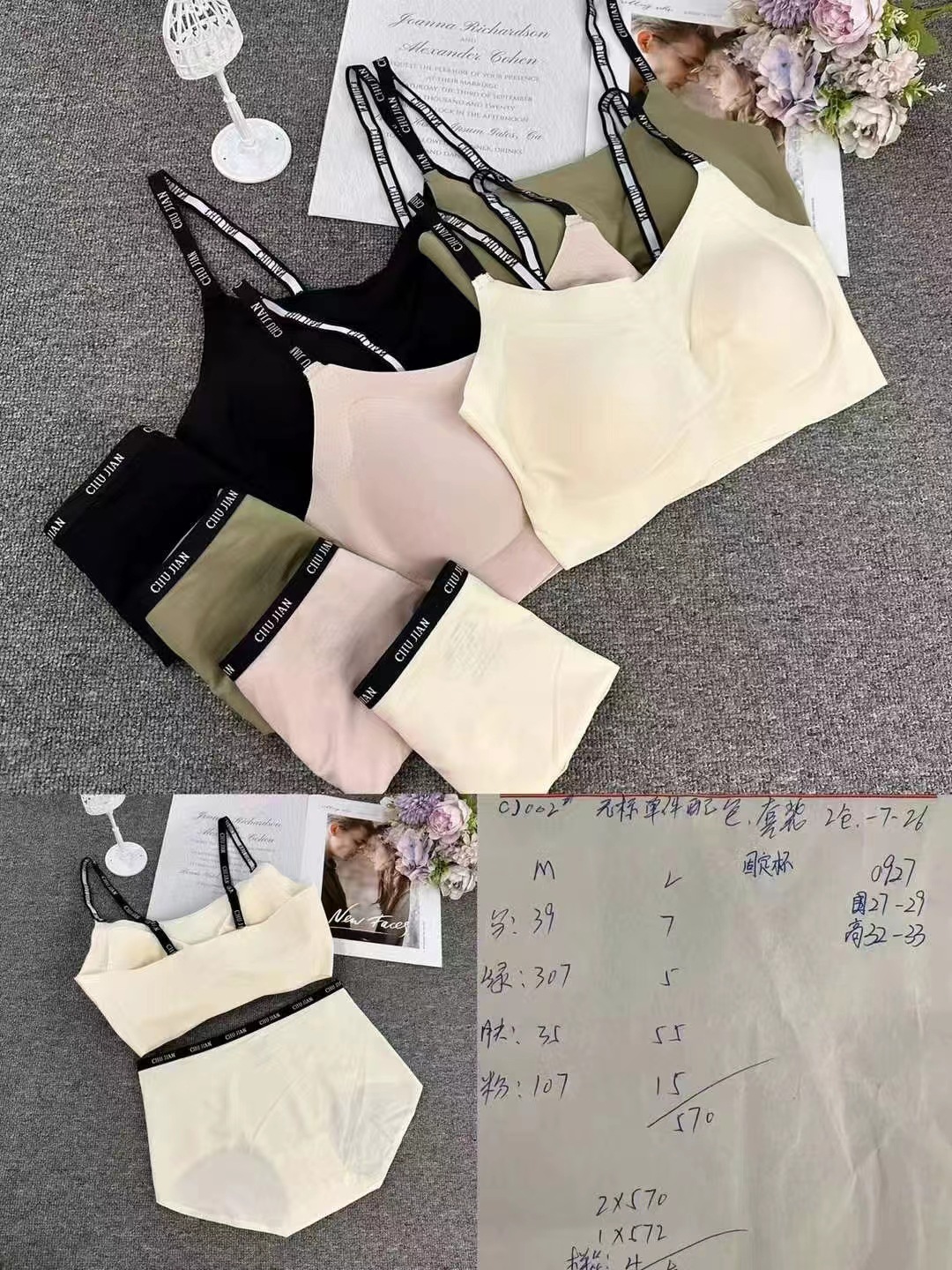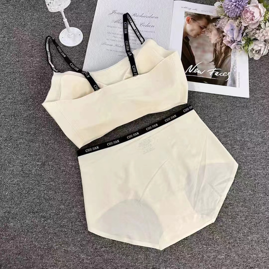 Nueva ropa interior sin marcas para mujeres Pequeño pecho anti-caída delgada sin anillo de acero cómodo bra set