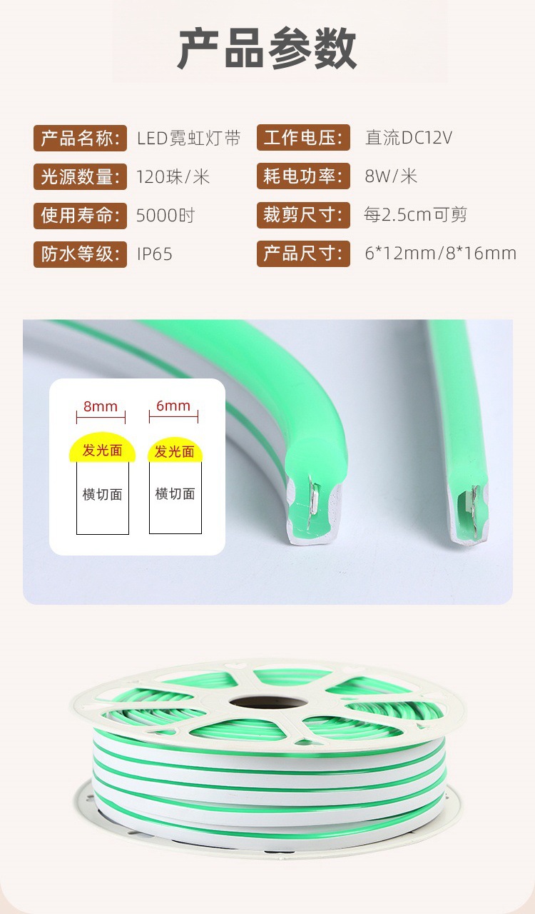 Cinturón de neón de silicona de 12V --- rollo completo de 50 m (6*12mm)-