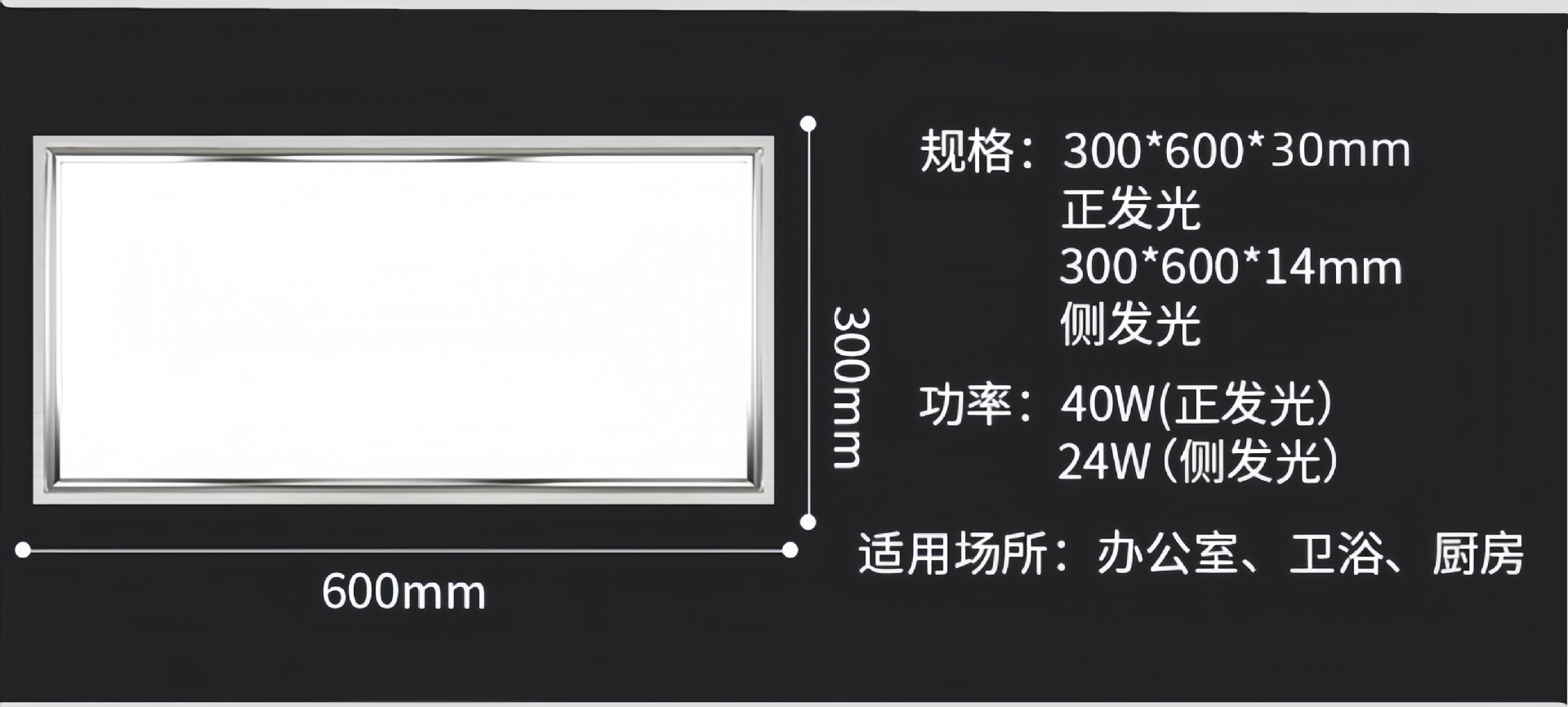 300*600 (luz lateral de 24W)