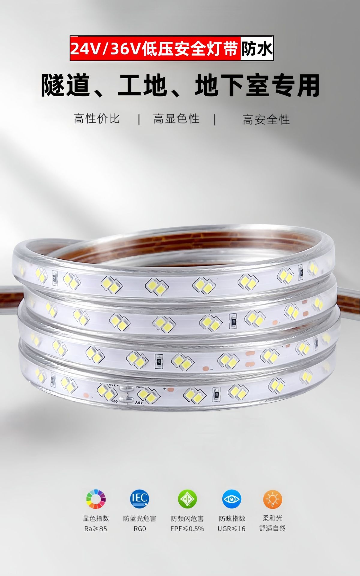 Luces impermeables de seguridad sin caída de presión de hasta 80 metros al aire libre ingeniería flexible túnel 36V seguridad 24VLED tira
