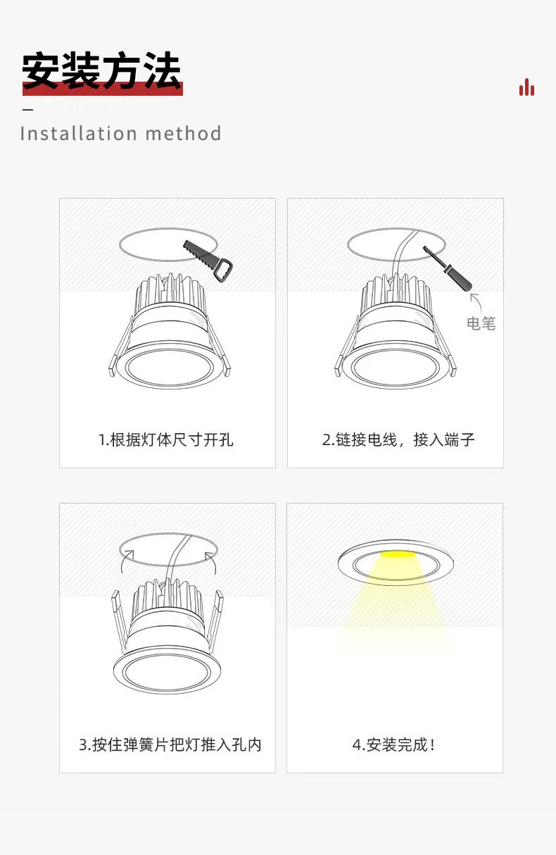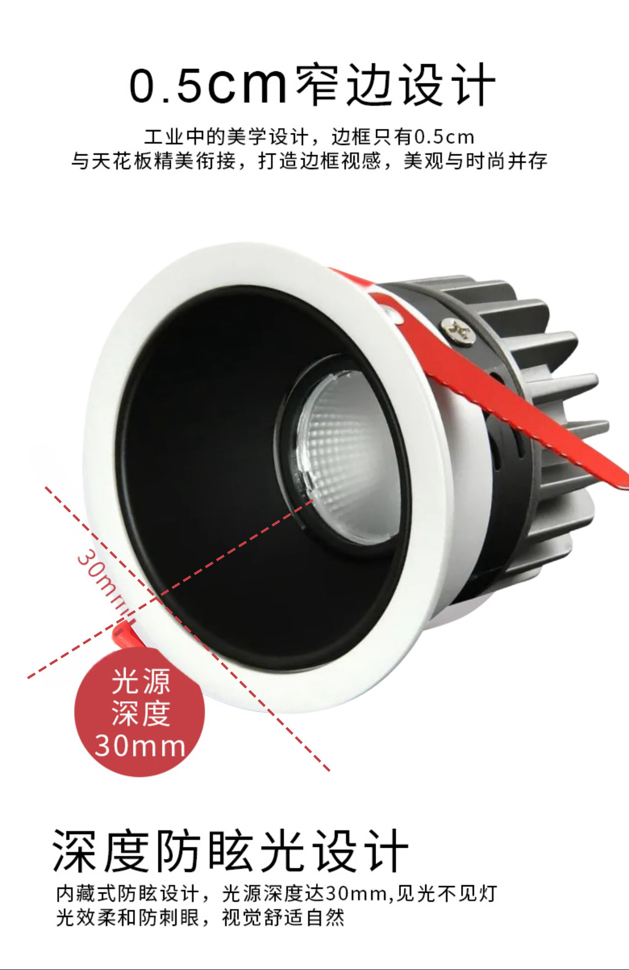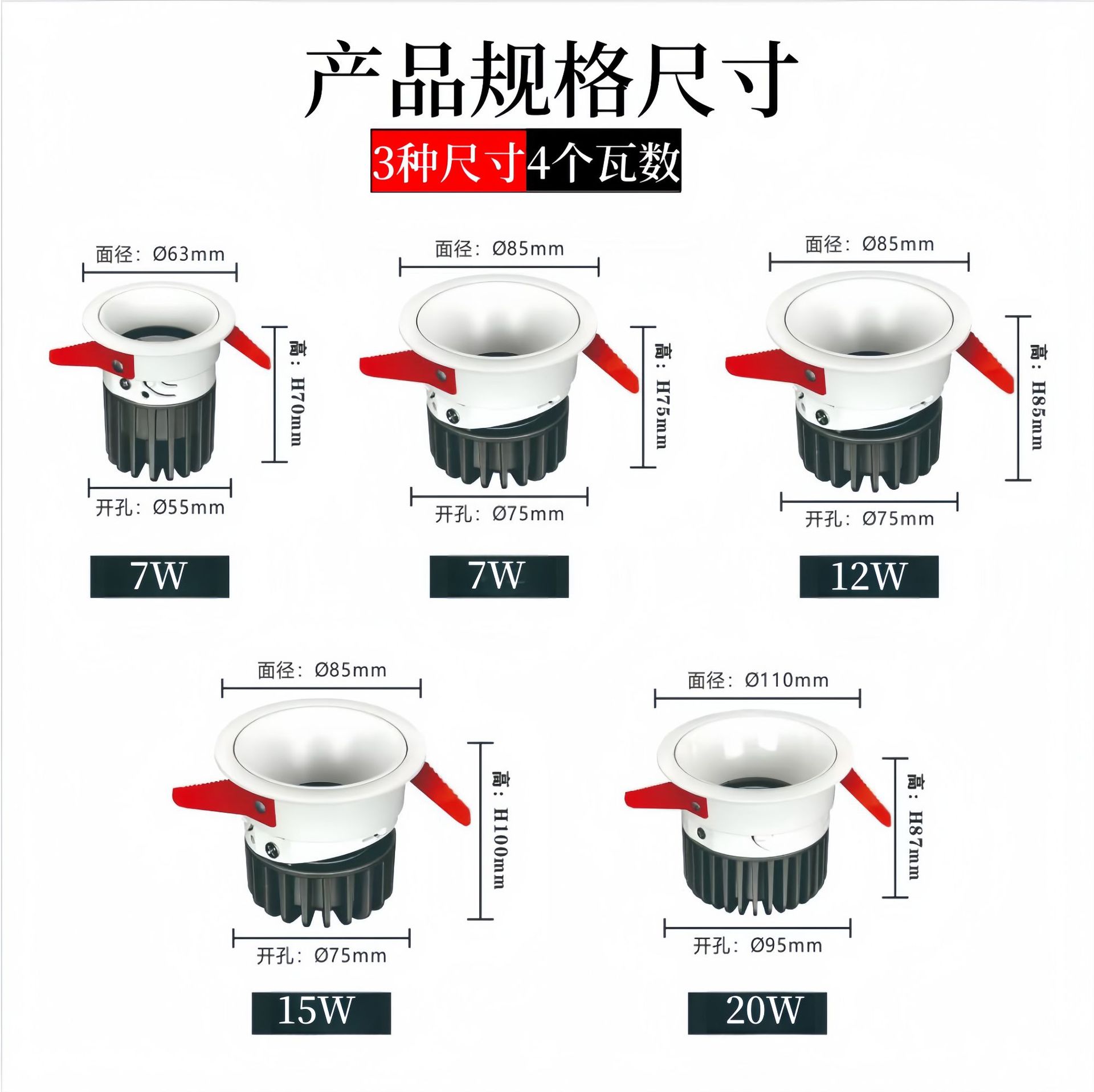 Lámpara de agujero de colina pequeña abertura de luz de techo de 75 mm95 mm 7W12W15W blanco de pantalla alta sin luz principal foco COB