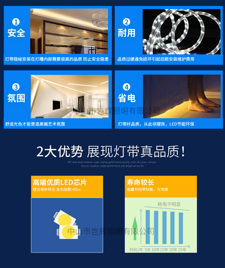 Tira de luz LED sala de estar luz techo brillante luz de noche con cadena de luz dormitorio lámpara de pared al aire libre Super brillante Instalación de ingeniería Zhongshan
