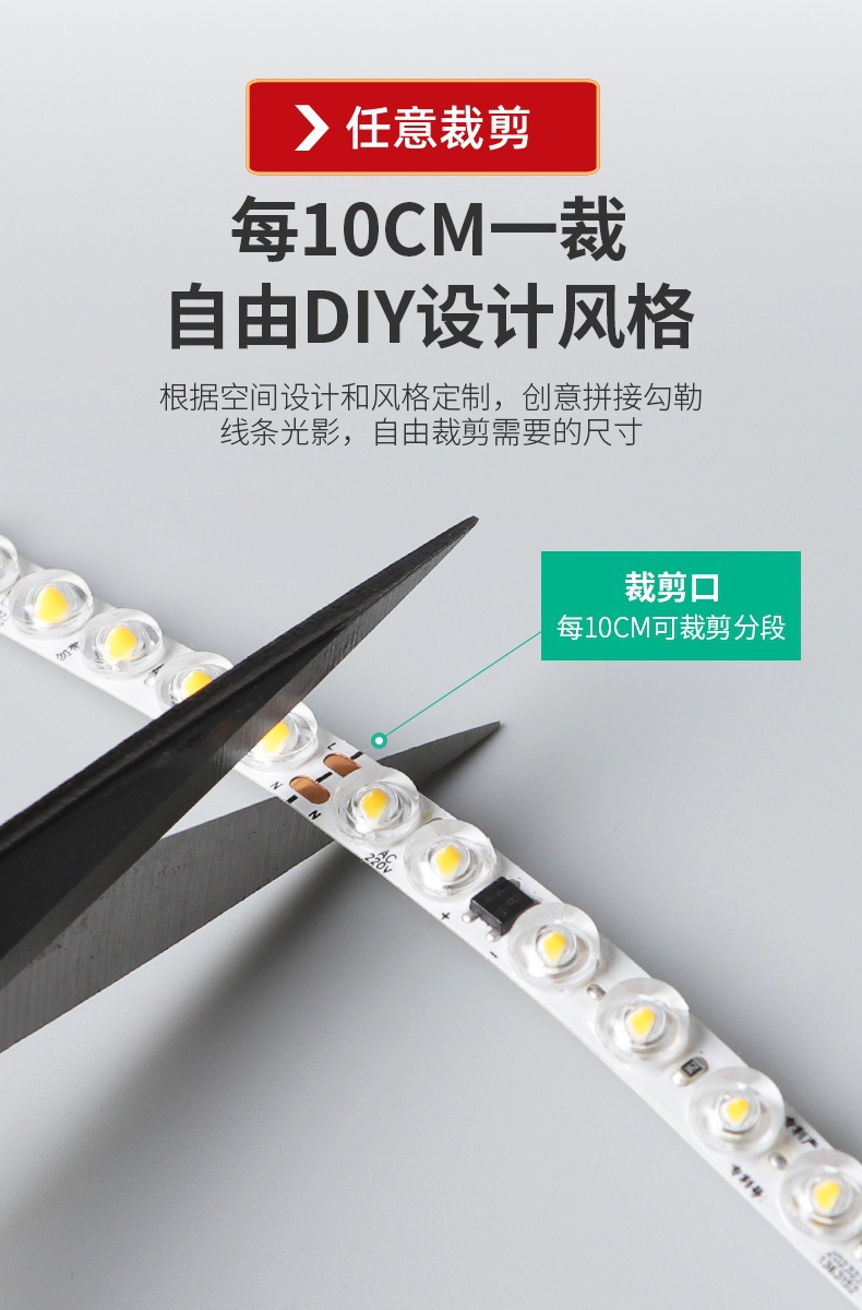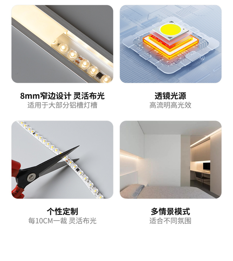 Lente de reflexión difusa tira de luz led con ranura de aluminio adhesivo 220V publicidad flexible sin unidad 8MM tira de luz LED autoadhesiva