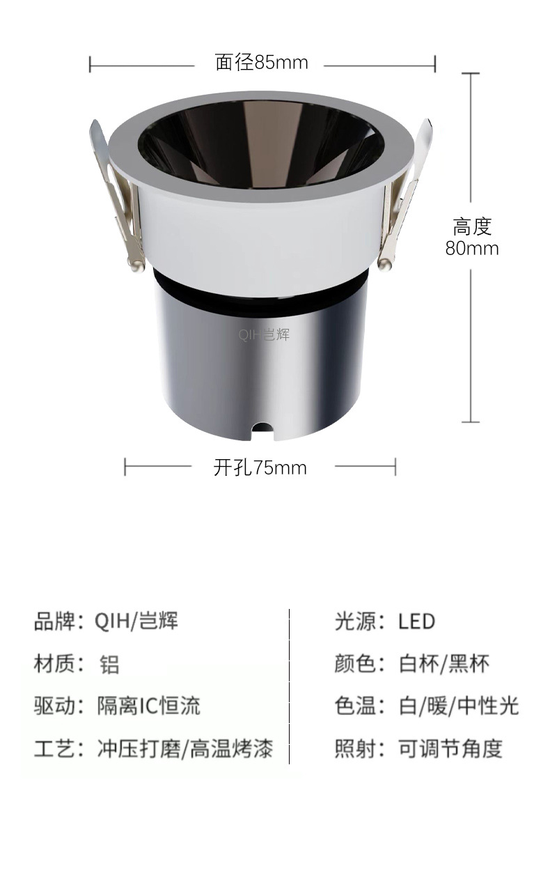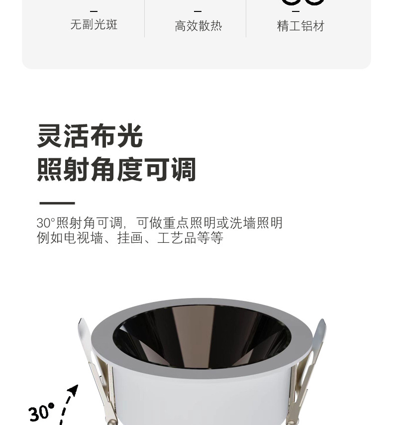 Anti-reflejo COB Spotlight incrustado LED lámpara de techo sala de estar hogar downlight sin lámpara principal iluminación Hotel pared lavado lámpara