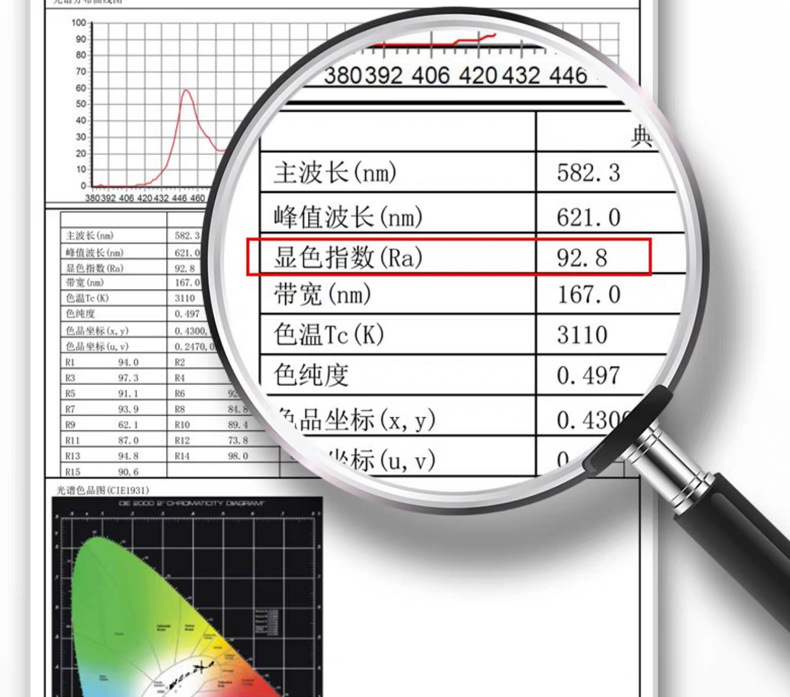 El espectro de luz total ra98 muestra 6000k de luz blanca