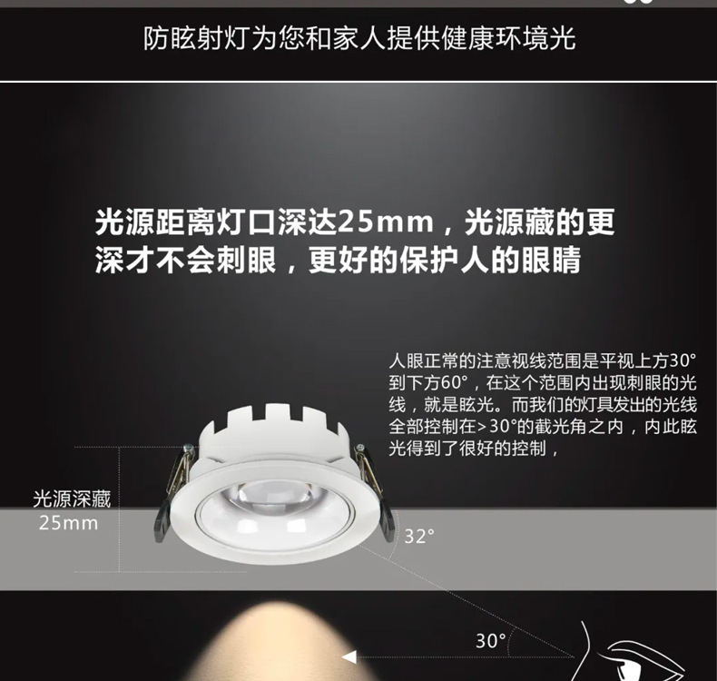Fabricante de suministro directo de lámpara incrustada colina doble párpado sala de estar doméstica sin lámpara principal anti-deslumbramiento profundo LED lámpara de pared de lavado