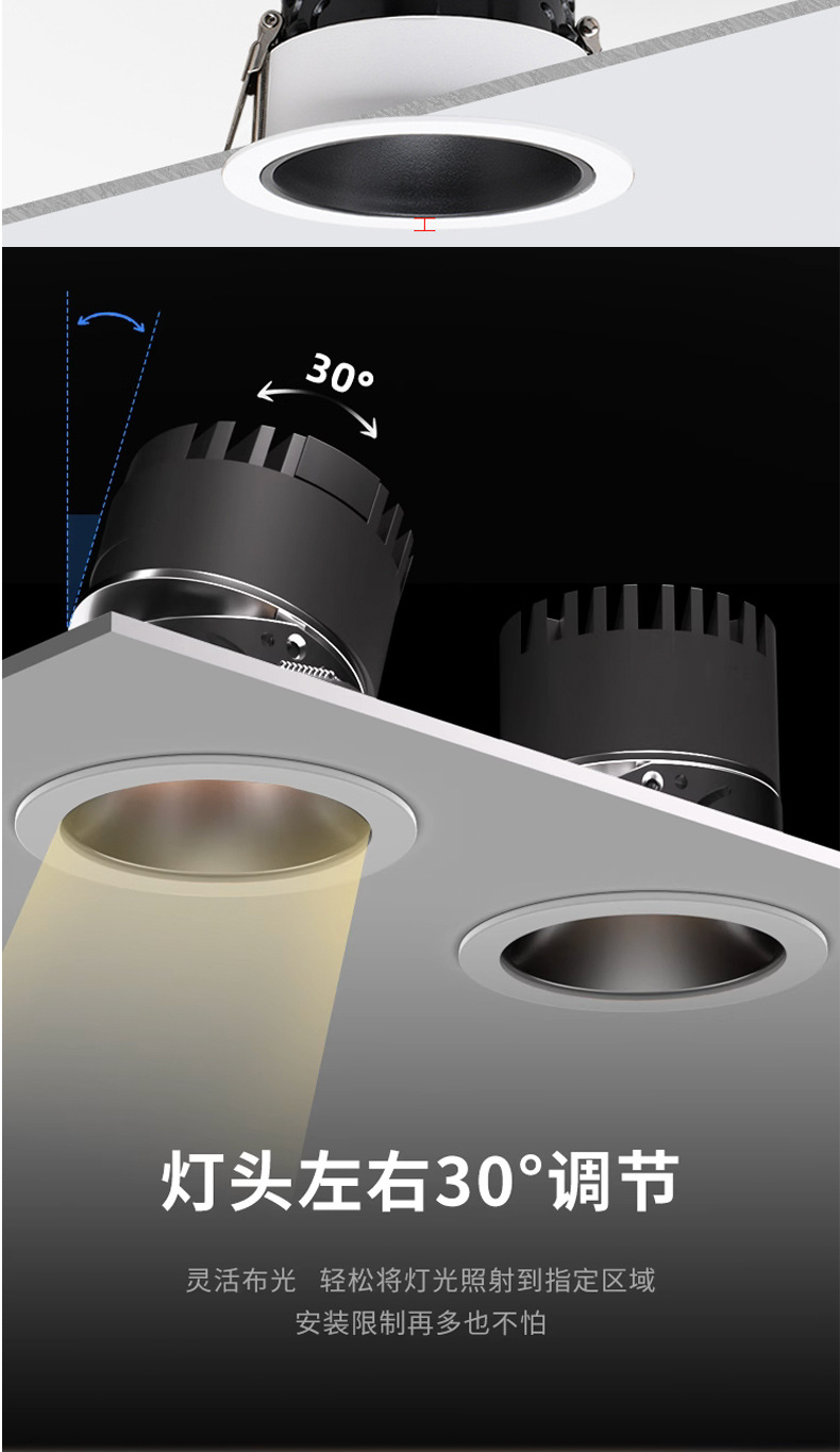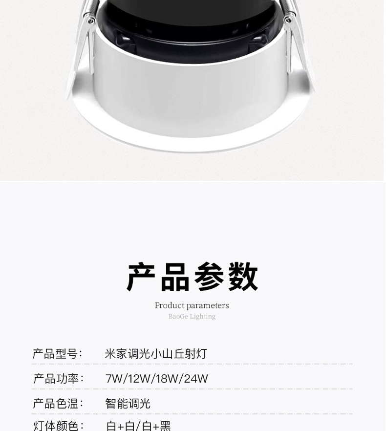 Zhongshan lámpara de luz de espectro completo Mijia Spotlight inteligente hogar incrustado colina protector de ojos anti-deslumbrante tubo de lavado de pared