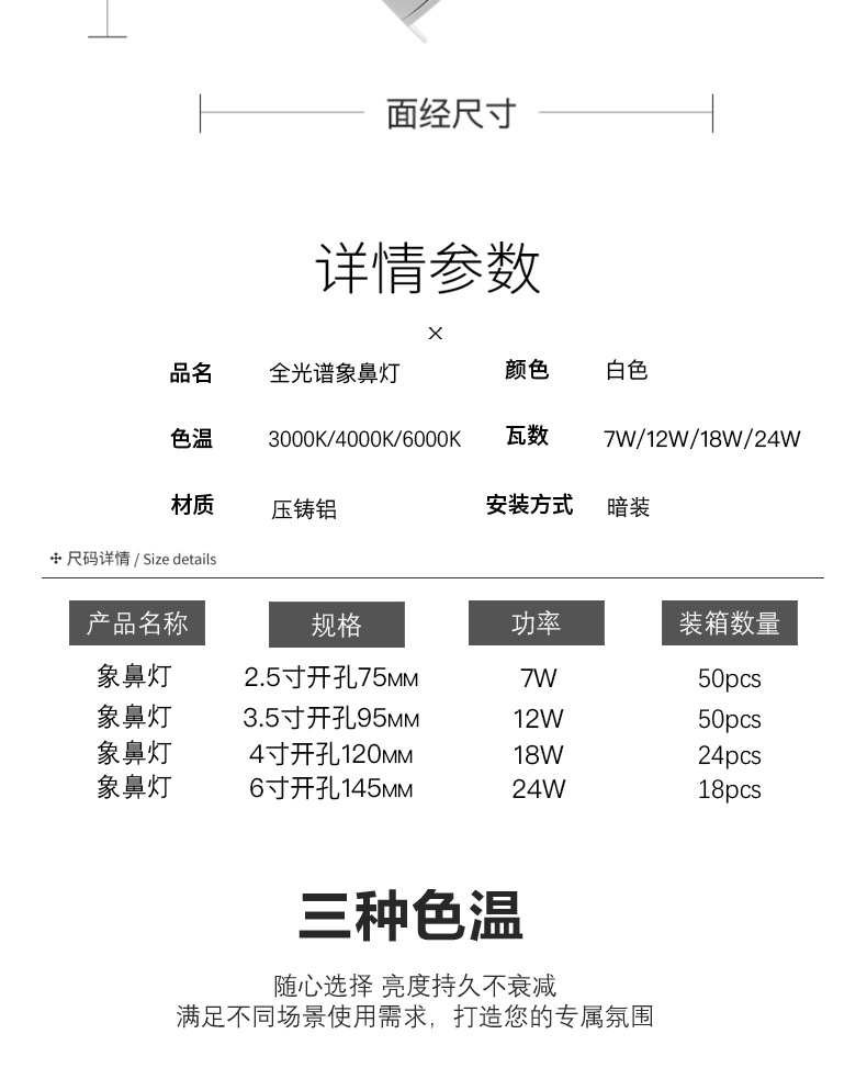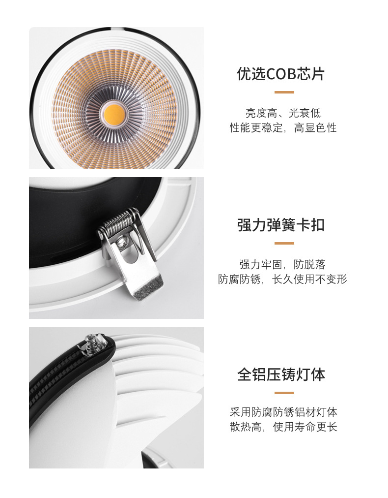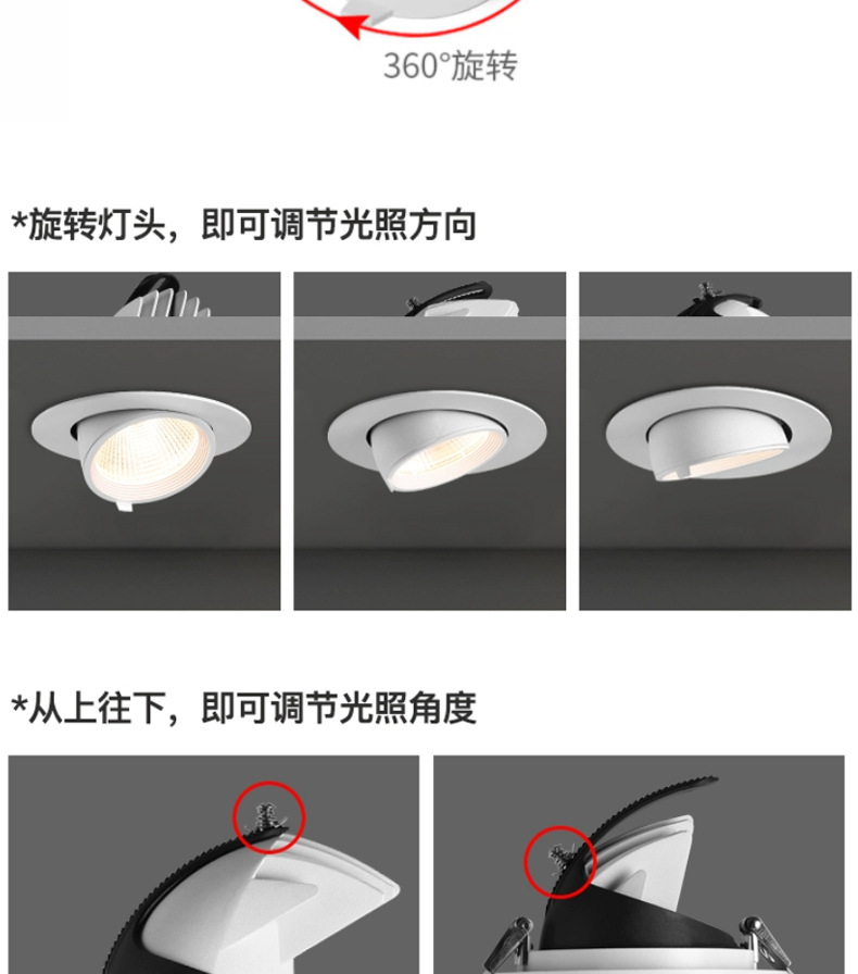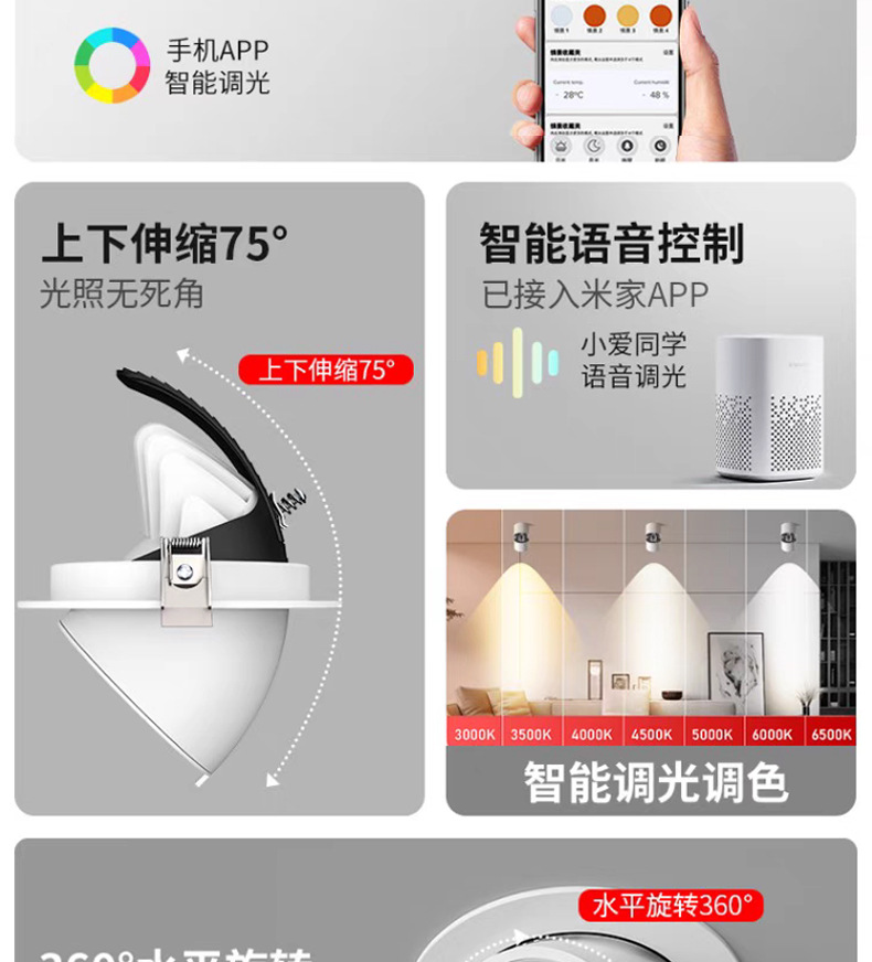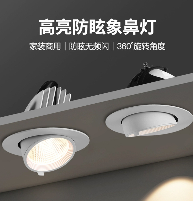 Fuente fábrica ángulo ajustable lámpara de nariz de elefante techo led incrustado Xiaoai luz de foco antideslumbrante de lavado de pared de espectro completo