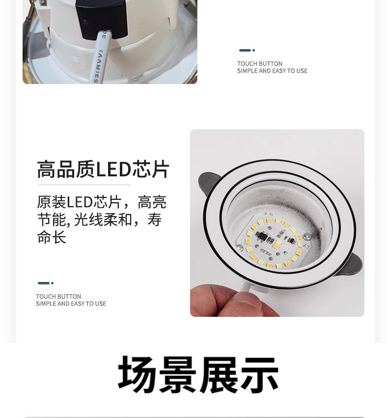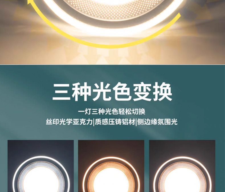Downlight led 5w luz downlight de cristal tricolor luz de agujero pasillo pasillo sala de estar techo luz de techo empotrada luz de agujero de 7w