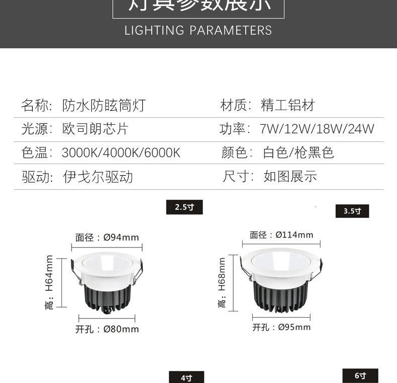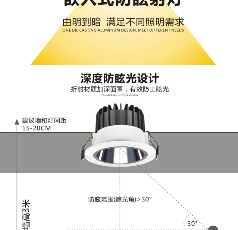 Fabricantes directamente suministrados downlight incrustado proyecto de hotel techo anti-deslumbramiento downlight led baño impermeable sin lámpara principal