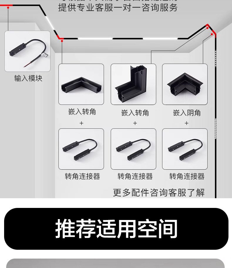 | Potencia | El modelo enterrado en la vía es de 2,0 de espesor, el modelo gris aprobado en la vía es de 2,0 de espesor, 10w - lámpara de absorción magnética (300mm de largo), 20w - lámpara de absorción magnética (600mm de largo), 30w - lámpara de absorción magnética (900mm de largo), 6w - lámpara de absorción magnética (112mm de largo), 12w - lámpara de rejilla (220mm de largo), 18W - lámpara de rejilla (330mm de largo), 24w - lámpara de rejilla plegable (440mm de largo), 6w - lámpara de rejilla plegable (135mm de largo), 12w - lámpara de rejilla plegable (230mm de largo), 6w - lámpara de rejilla plegable (35 * 80mm de largo), 10w - lámpara de vía (750 mm de largo) *90mm), 15w - luz de pista (65 * 115mm), 20w - luz de pista (80 * 135mm), 6w - luz de suspensión (30 * 300mm), 10w - luz de suspensión (40 * 300mm), 12w - luz de suspensión (55 * 300mm), módulo de entrada (línea de entrada), módulo directo (línea de conexión), esquina l horizontal, módulo de esquina (conexión en forma de l), fuente de alimentación de absorción magnética de 100 vatios, fuente de alimentación de absorción magnética de 200 vatios |
