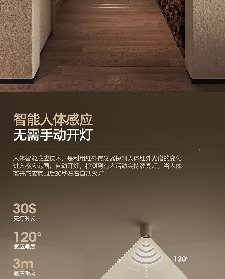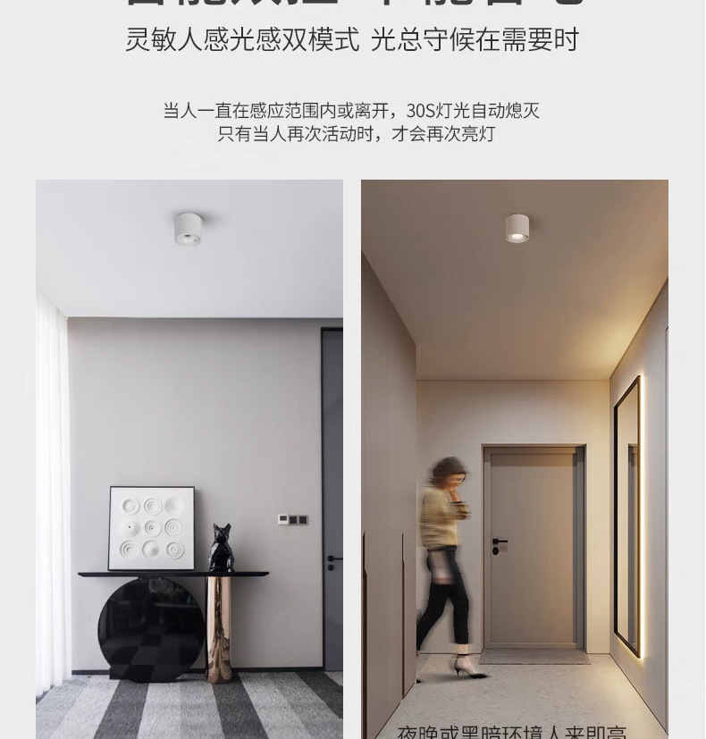 Inducción de luz abierta downlight sin agujero corredor de entrada inducción de cuerpo humano led luz de techo luz inteligente de control de luz