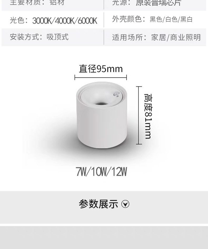 | Potencia | Negro + negro de pistola - 12w / inducción humana + sensación de luz, blanco completo - 12w / inducción humana + sensación de luz, blanco + negro de pistola - 12w / inducción humana + sensación de luz |