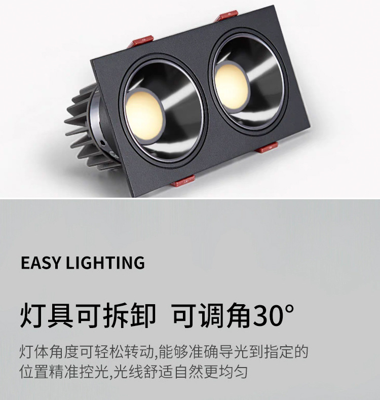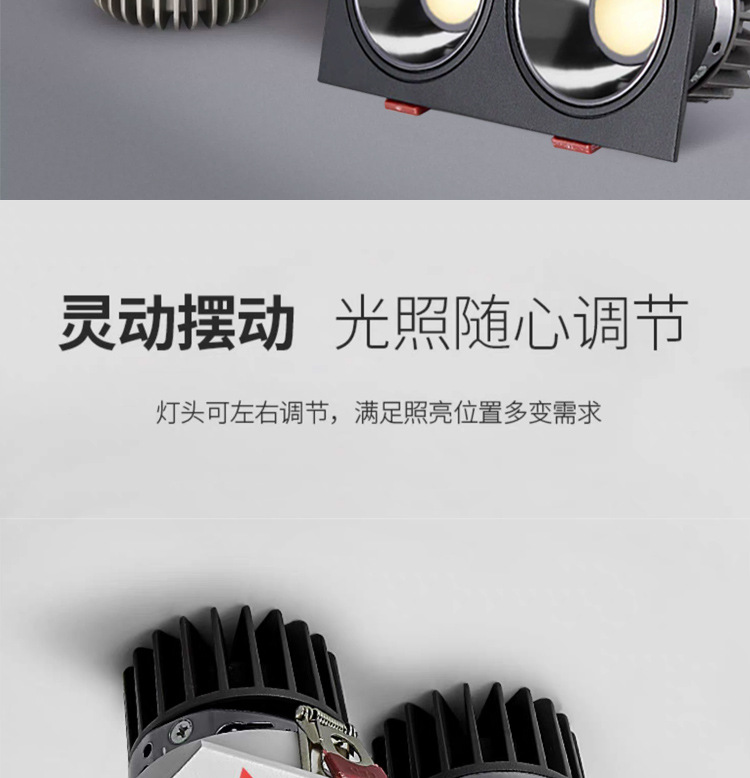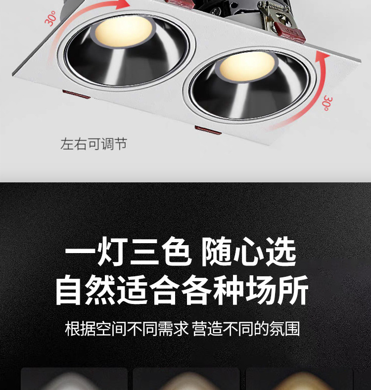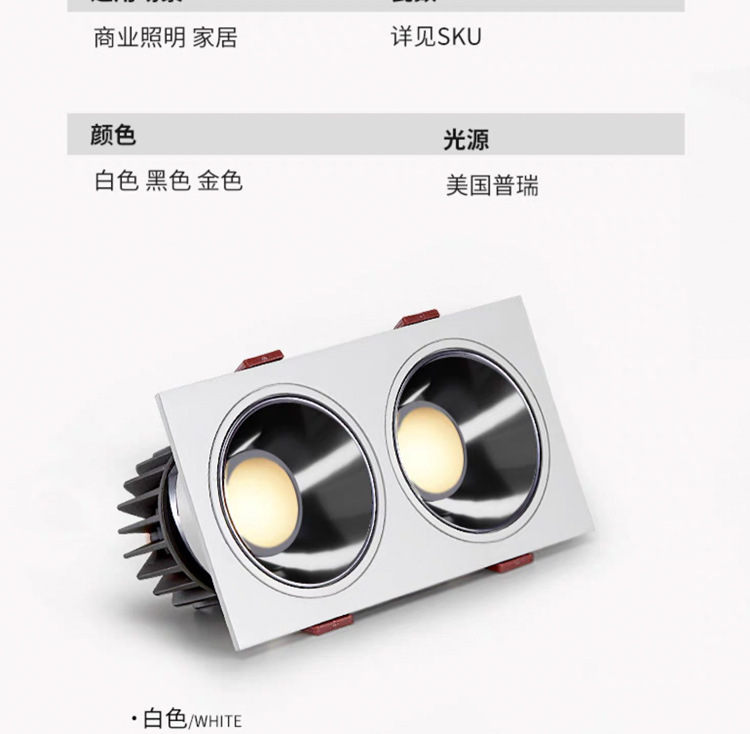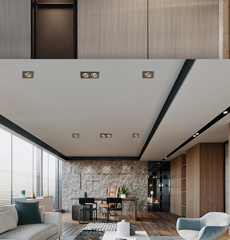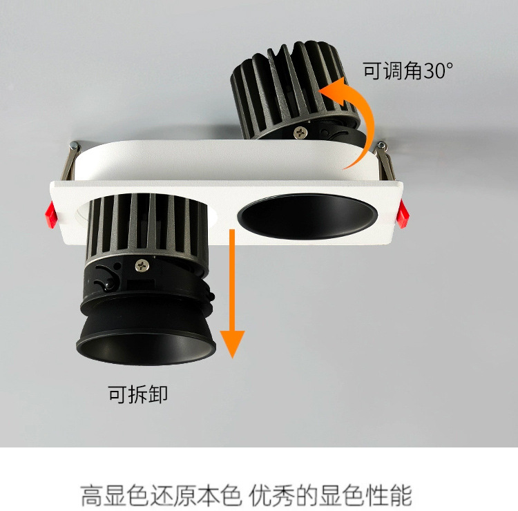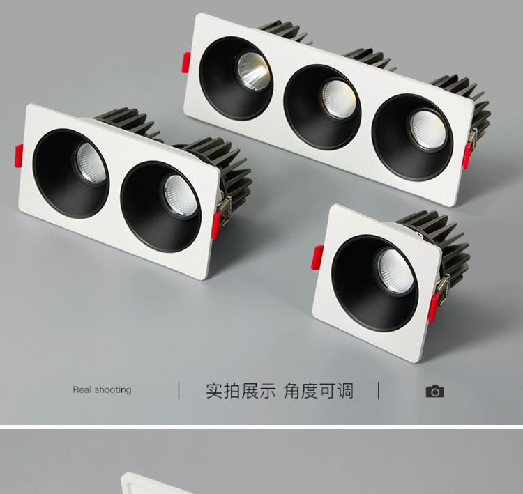 Spotlight comercial incrustado LED parrilla lámpara techo downlight rejilla cuadrada cob simple doble triple cabeza lámpara biliar
