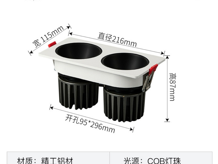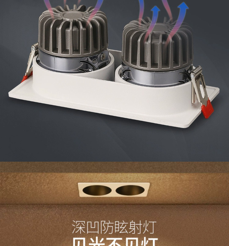 Spotlight pequeña colina de doble cabeza lámpara de rejilla empotrada antideslumbrante hogar comercial Full Spectrum COB lámpara de techo lámpara de cubo