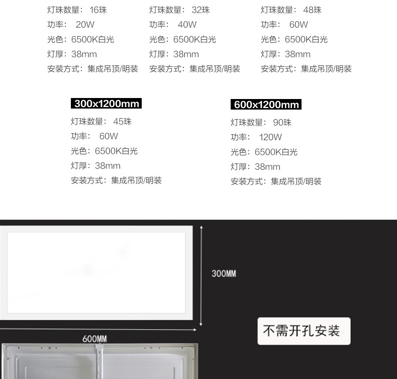 300*1200-45 perlas 60W de montaje abierto