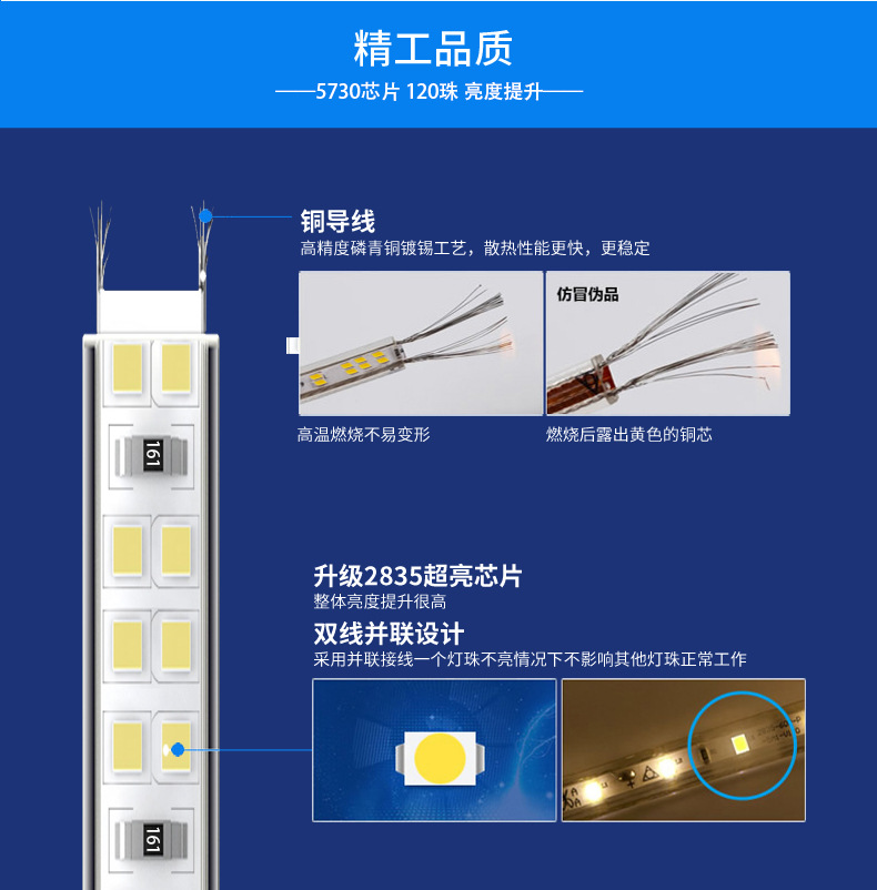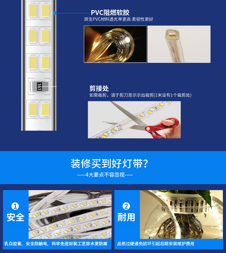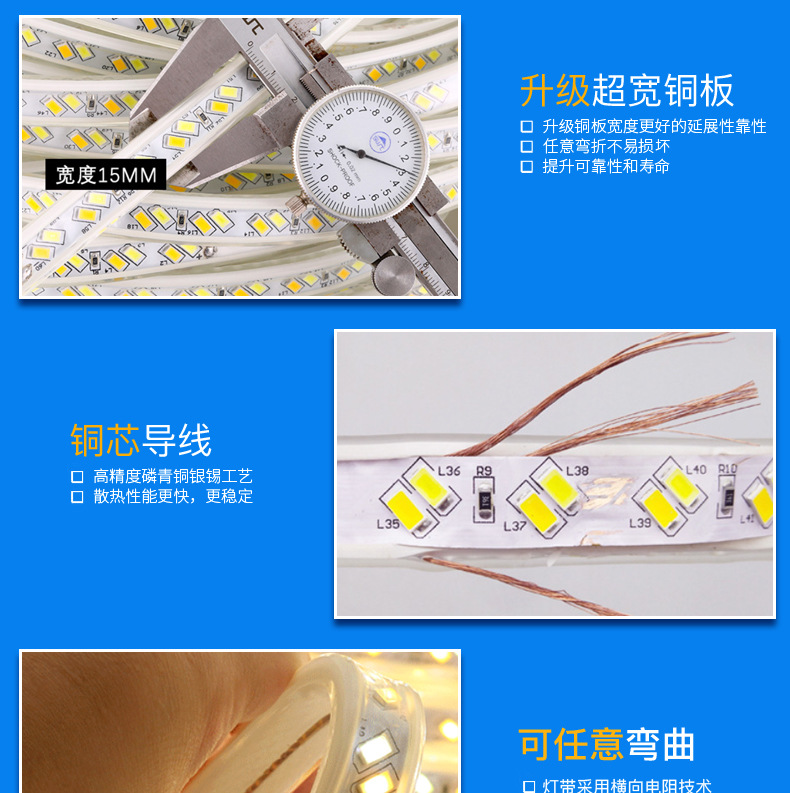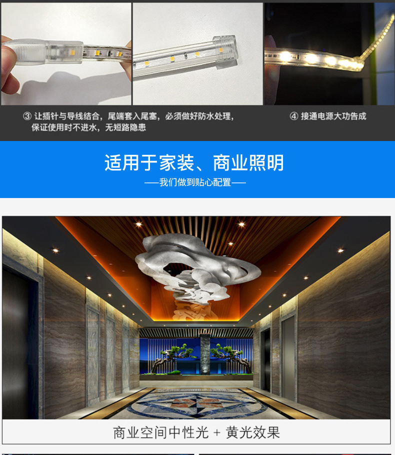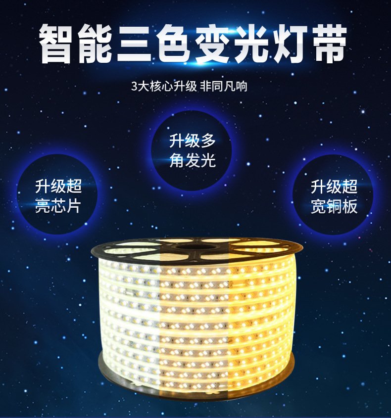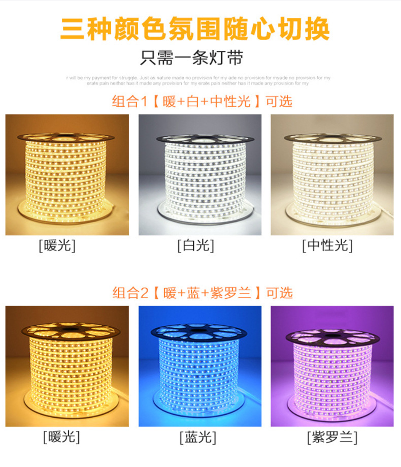 Tira de luz led barra de luz no estroboscópica 220V sala de estar super brillante hogar atmósfera de techo de silicona de tres colores barra de luz