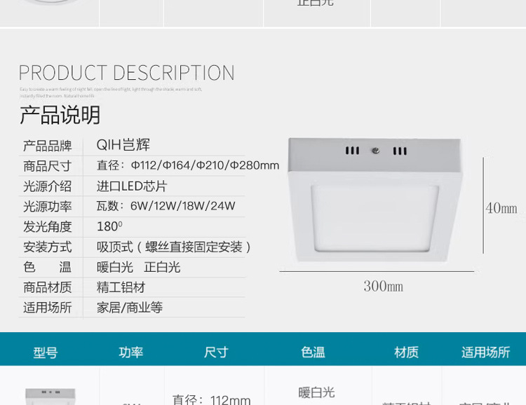 [Aislamiento de voltaje amplio 90 - 265V] cuadrado 12W 170 * 170 * 32MM