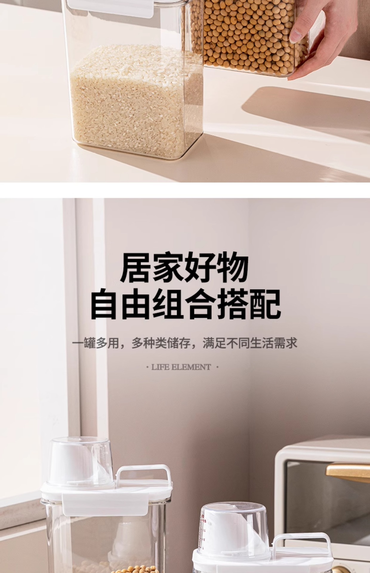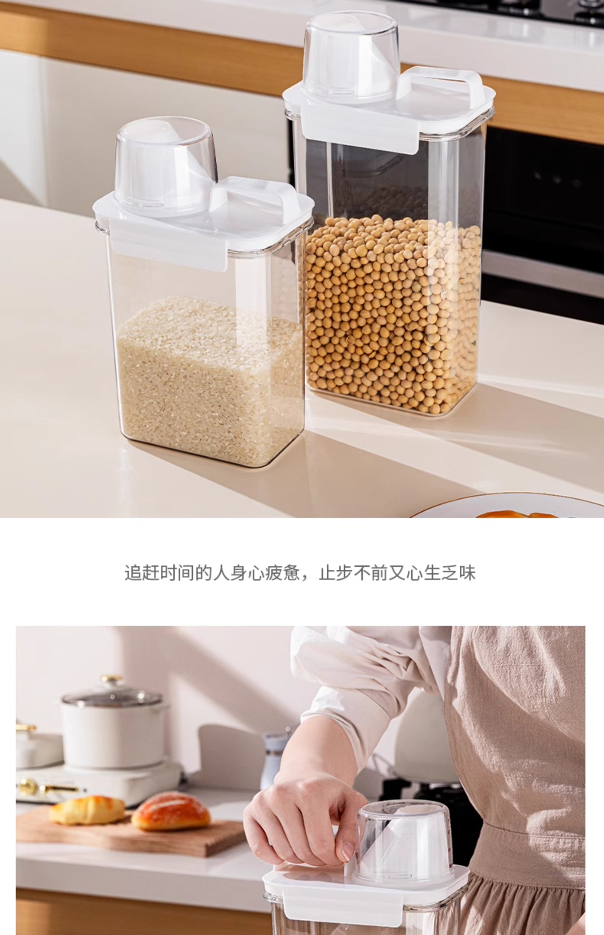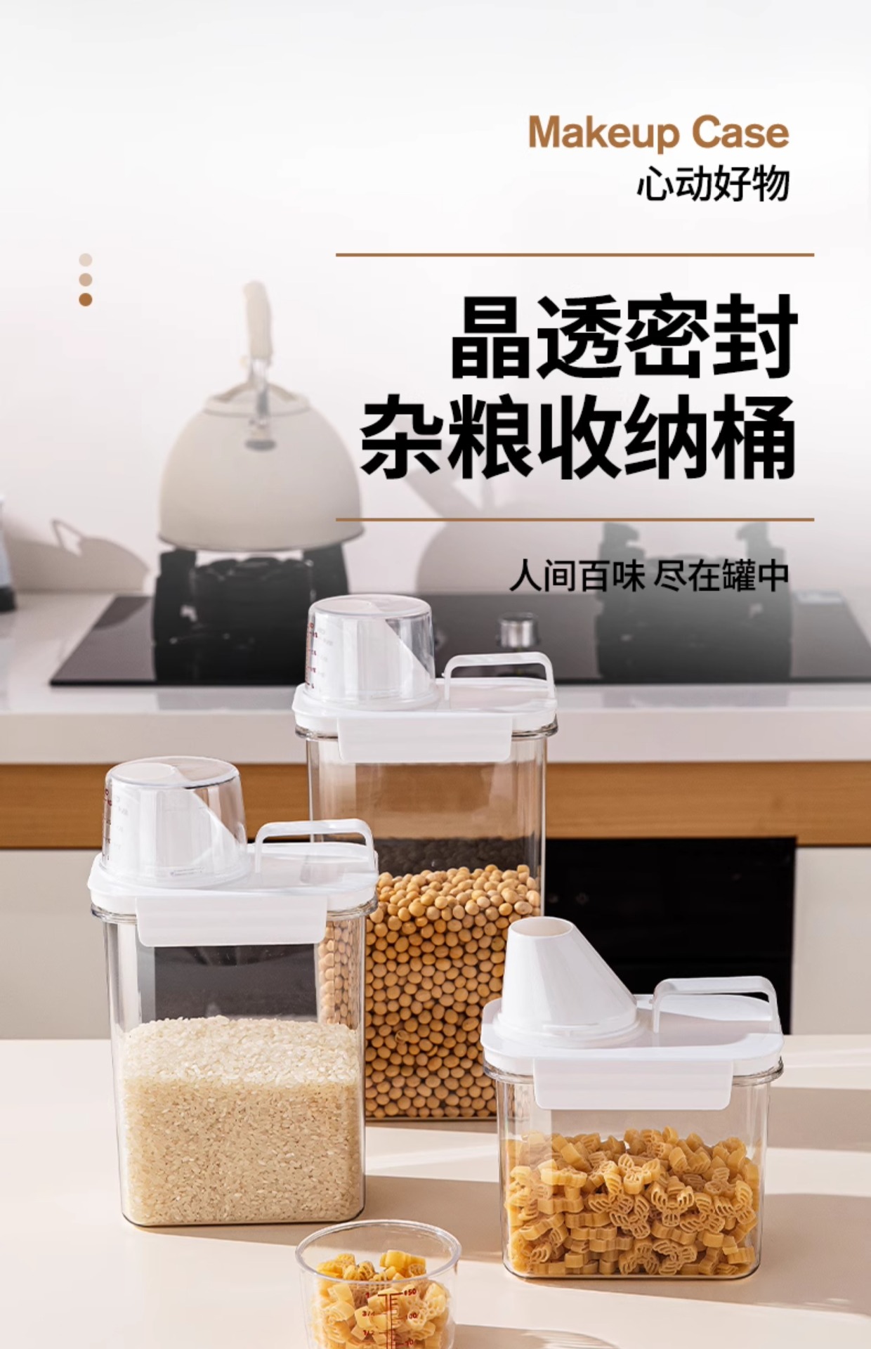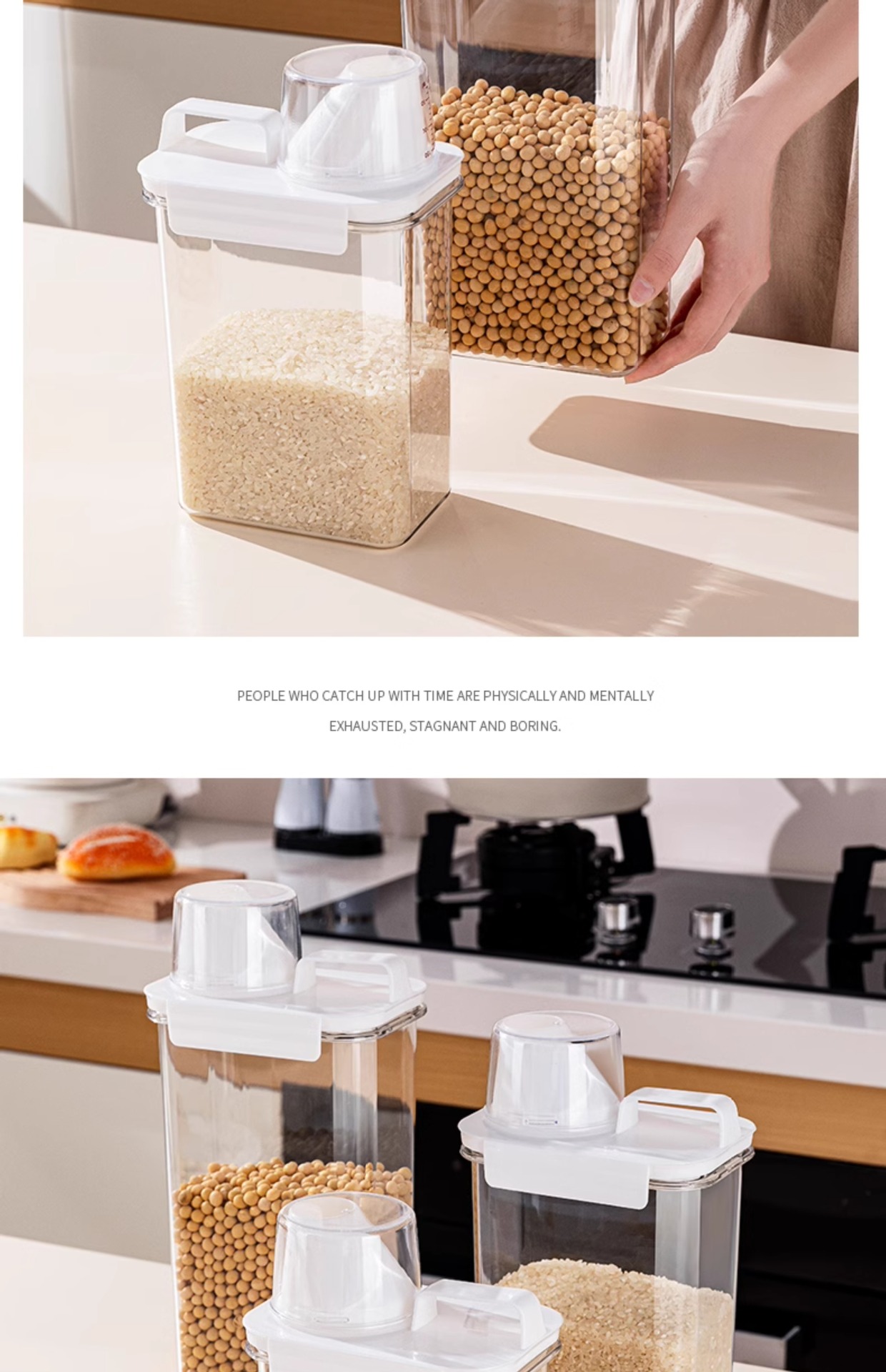 Tanque de almacenamiento de granos de cocina, tanque de almacenamiento de granos de granos, tanque de arroz transparente, tanque de harina, tanque de sellado de plástico, caja de almacenamiento