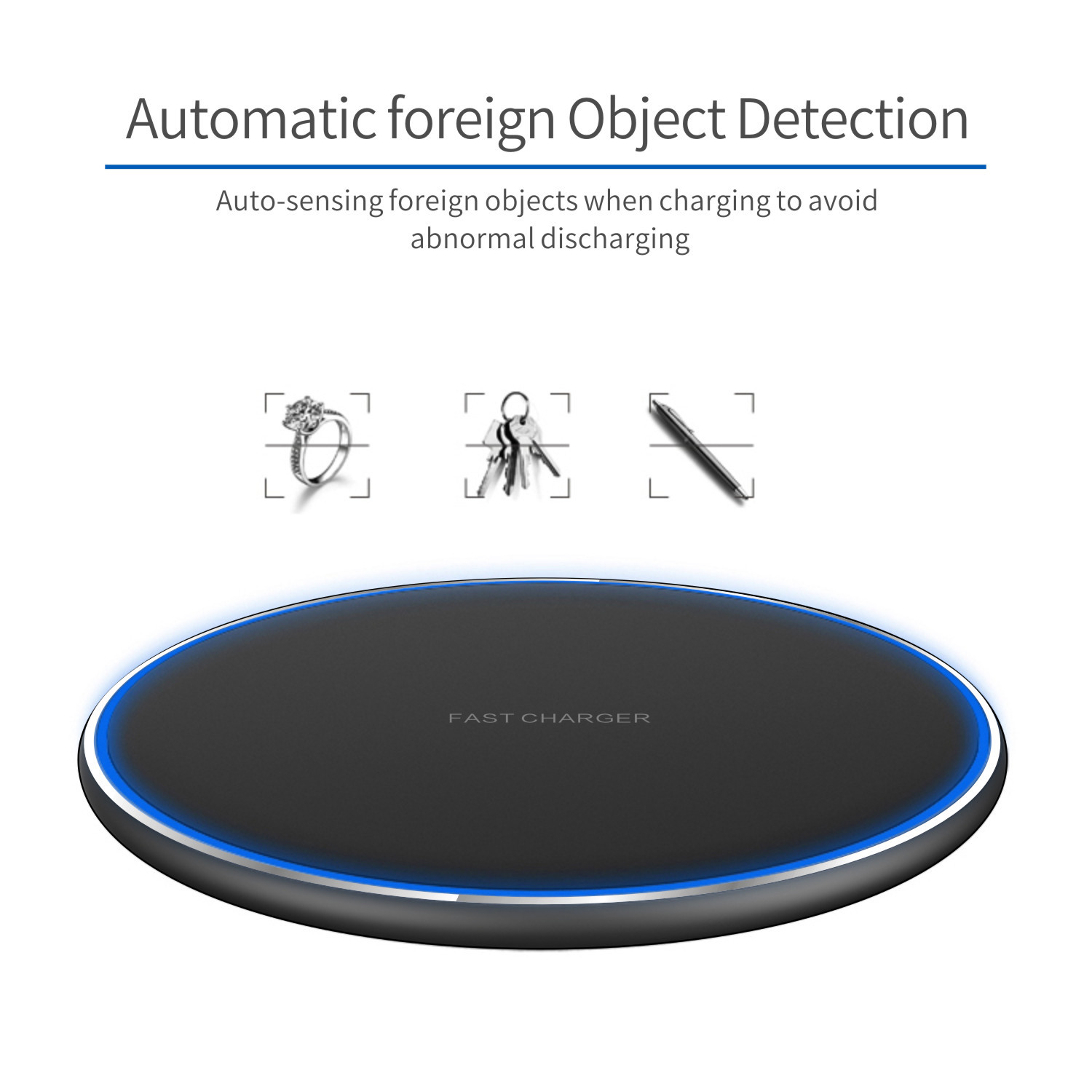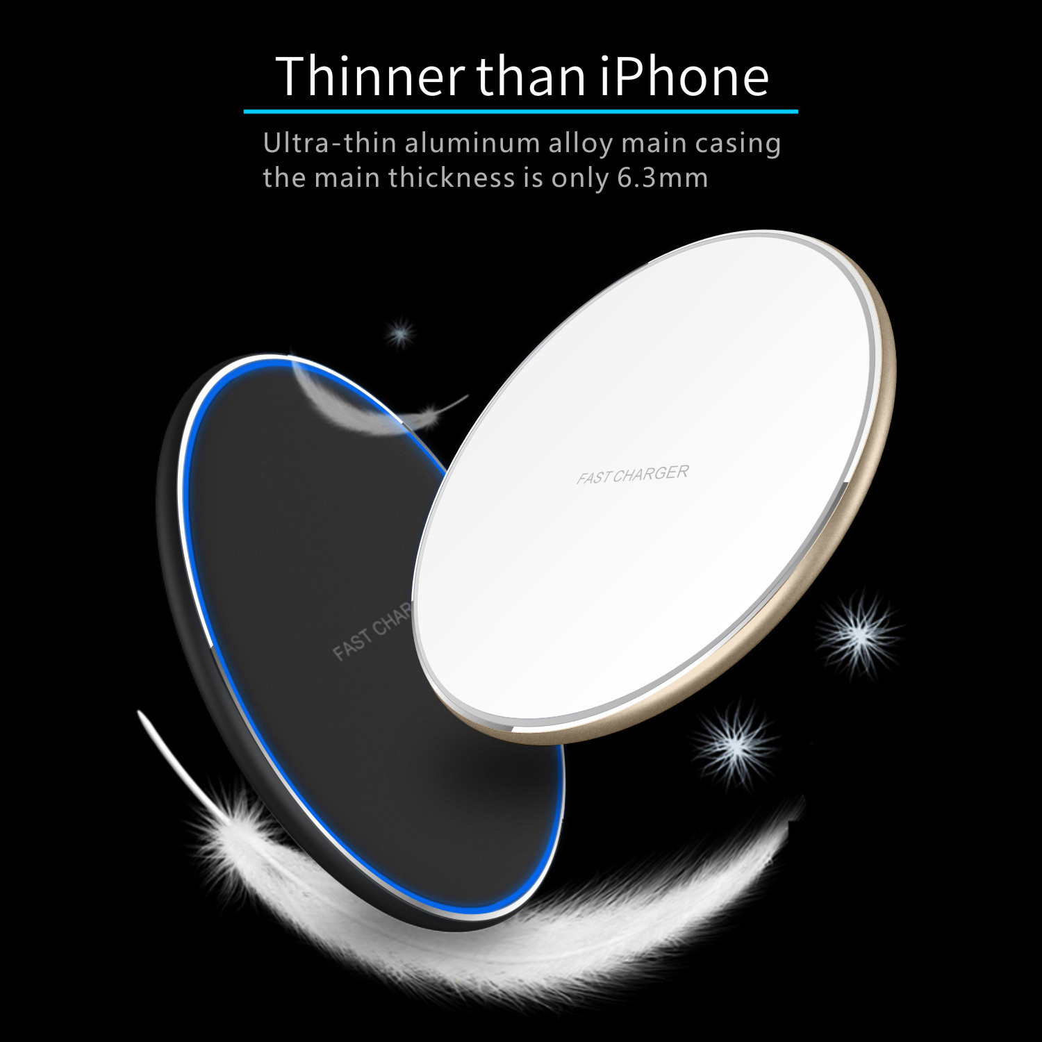 Cargador inalámbrico ultradelgado y redondo de 15 W para teléfono móvil, compatible con Apple y Huawei, carga inalámbrica de escritorio de 10 W