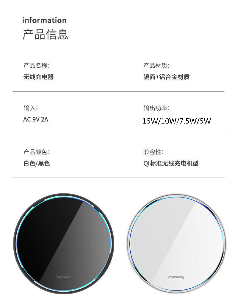 Cargador inalámbrico de espejo de 10w/15w/20w, ultrafino, tipo disco, para escritorio, carga rápida para teléfono móvil, regalo, venta al por mayor
