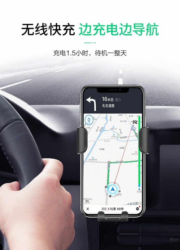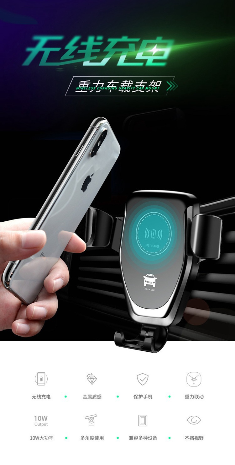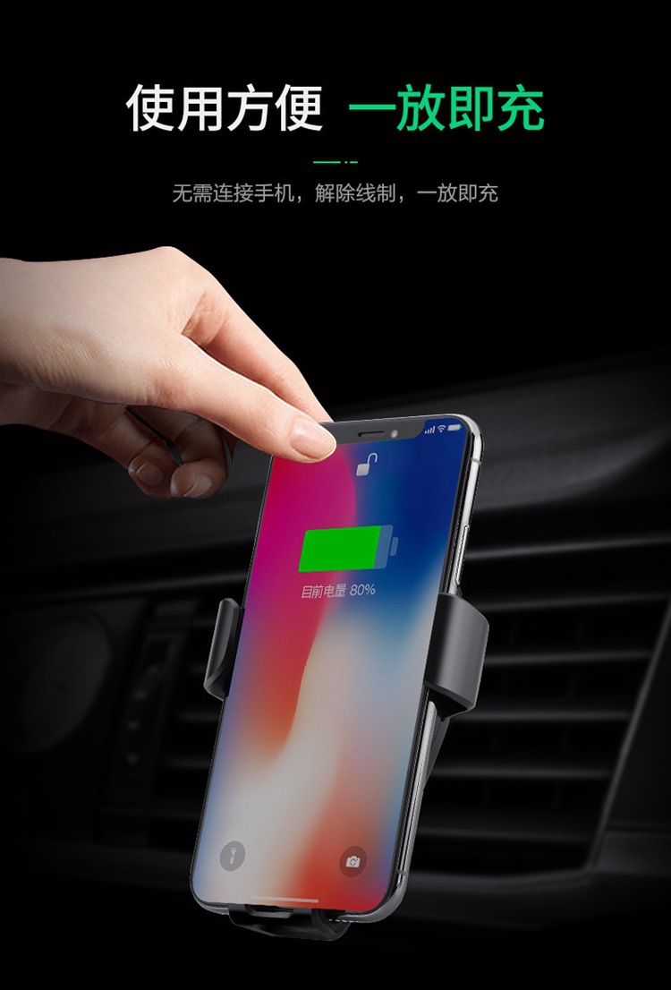Cargador inalámbrico para coche tipo C transfronterizo de 15 W, soporte para teléfono móvil con salida de aire, carga rápida, sensor de gravedad, venta al por mayor