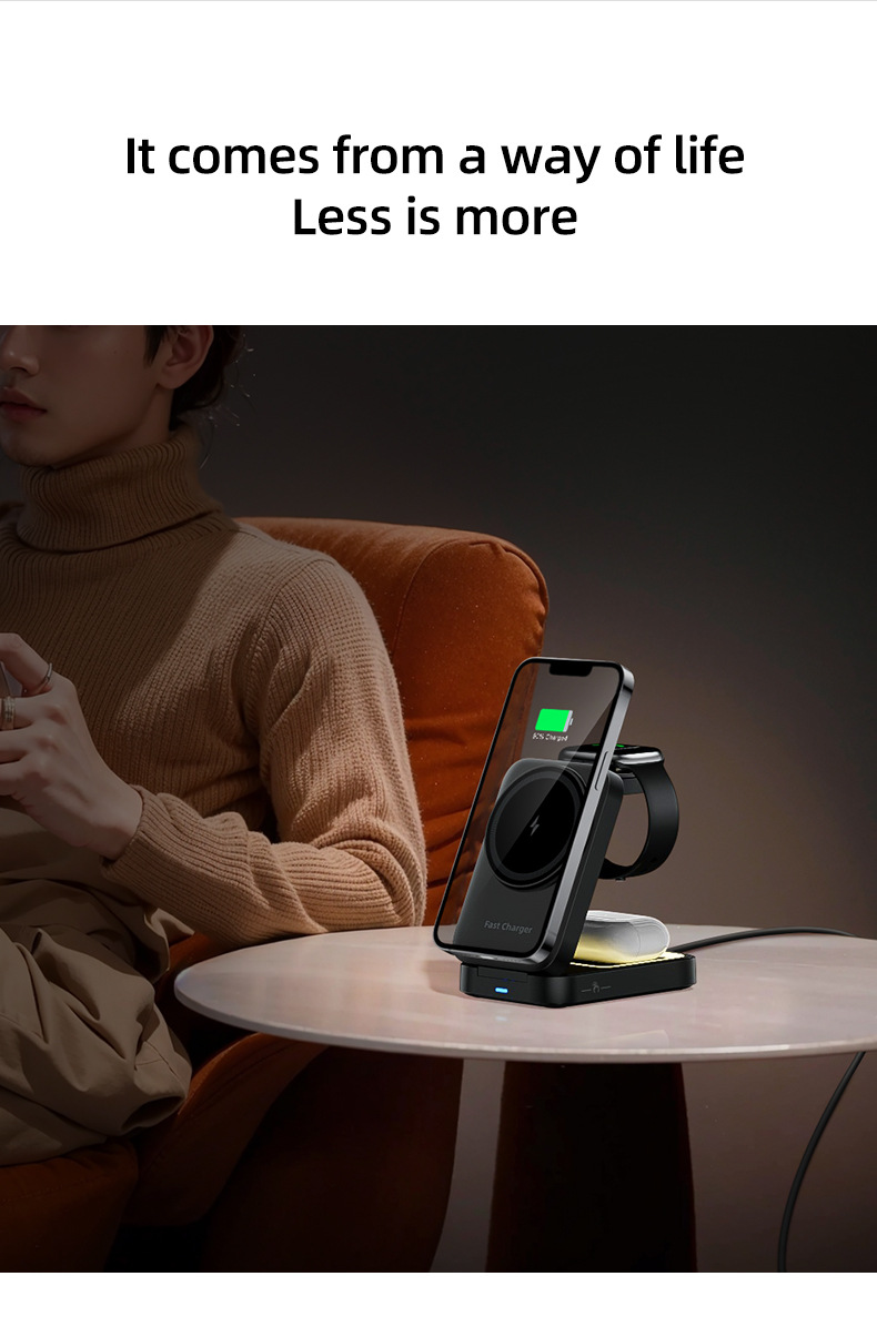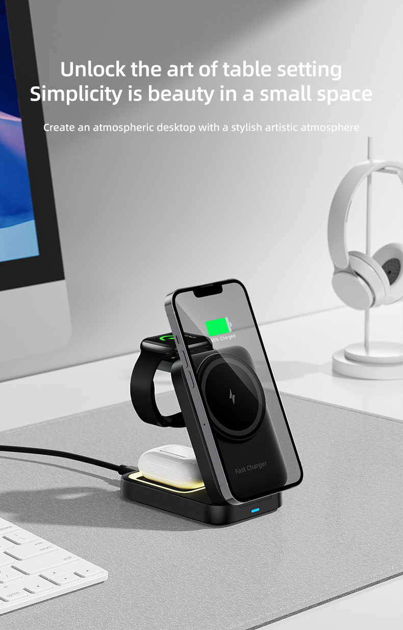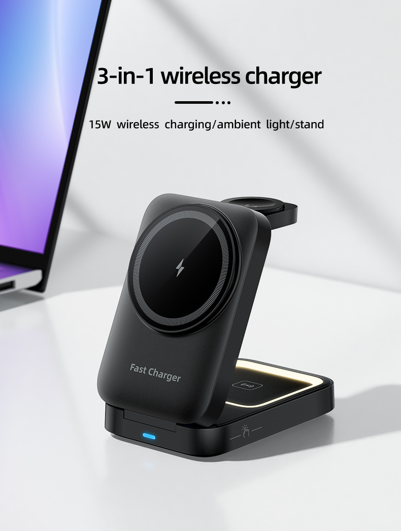 Carga rápida y plegable perezoso soporte magnético carga inalámbrica 3 en 1 relojes auriculares cargador de soporte de teléfono móvil