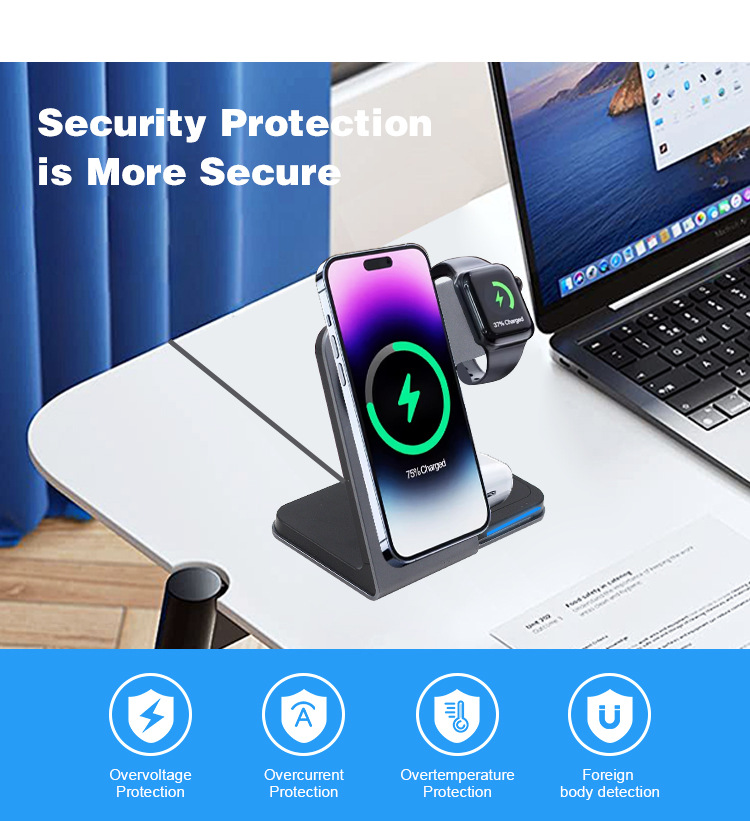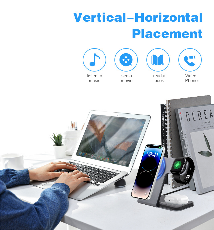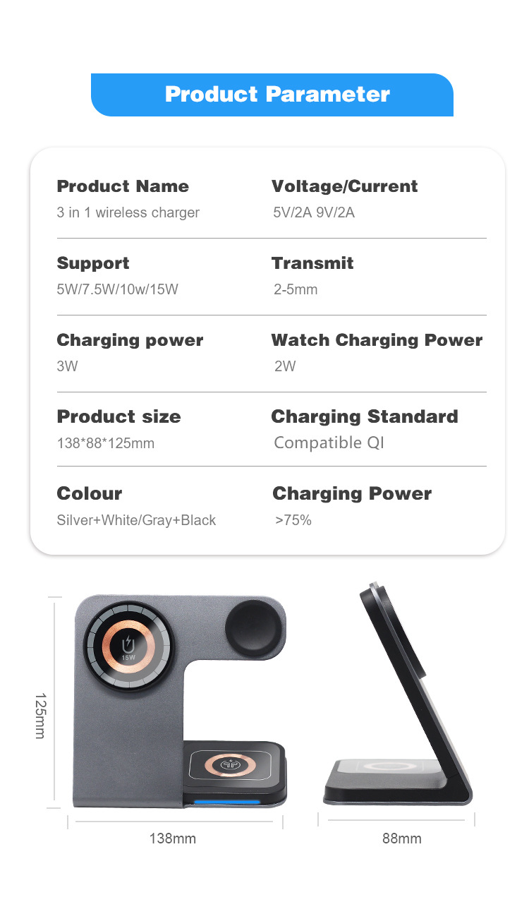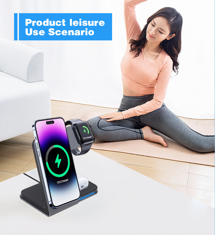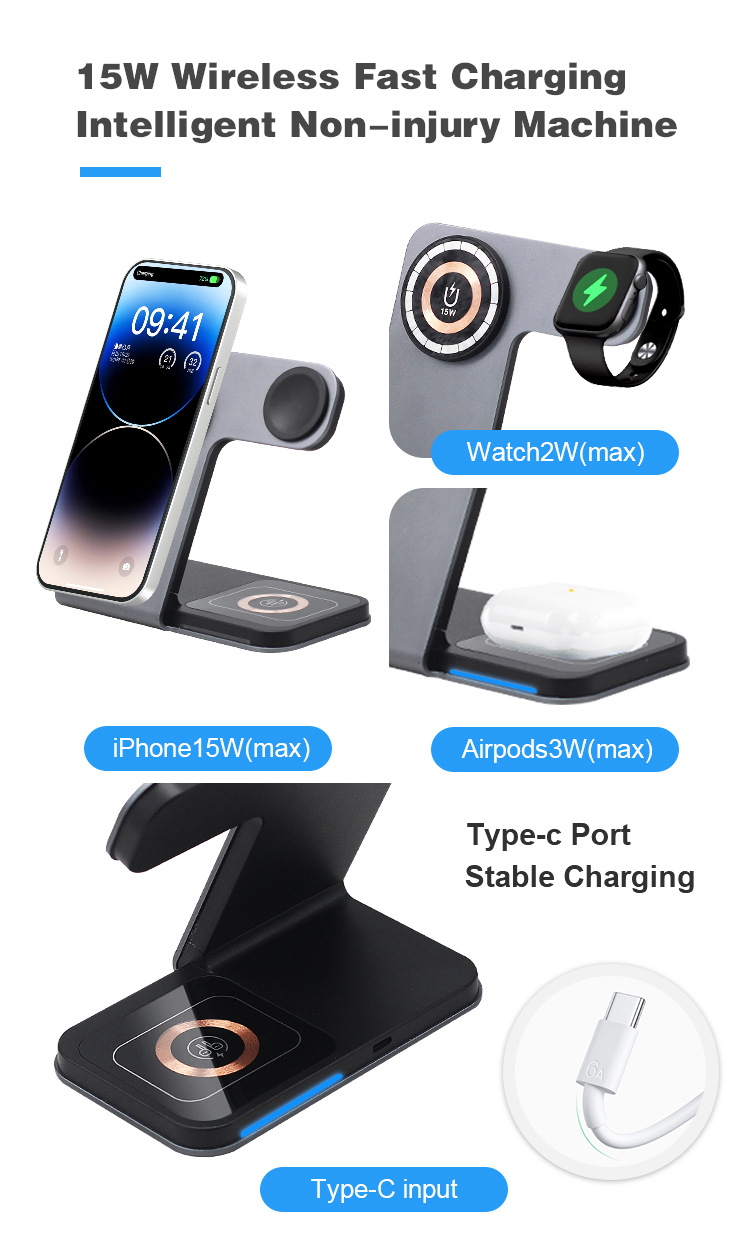 Cargador inalámbrico tres en uno magnético transfronterizo de 15W, soporte para teléfono móvil, aleación de aluminio, carga rápida conveniente, cargador inalámbrico