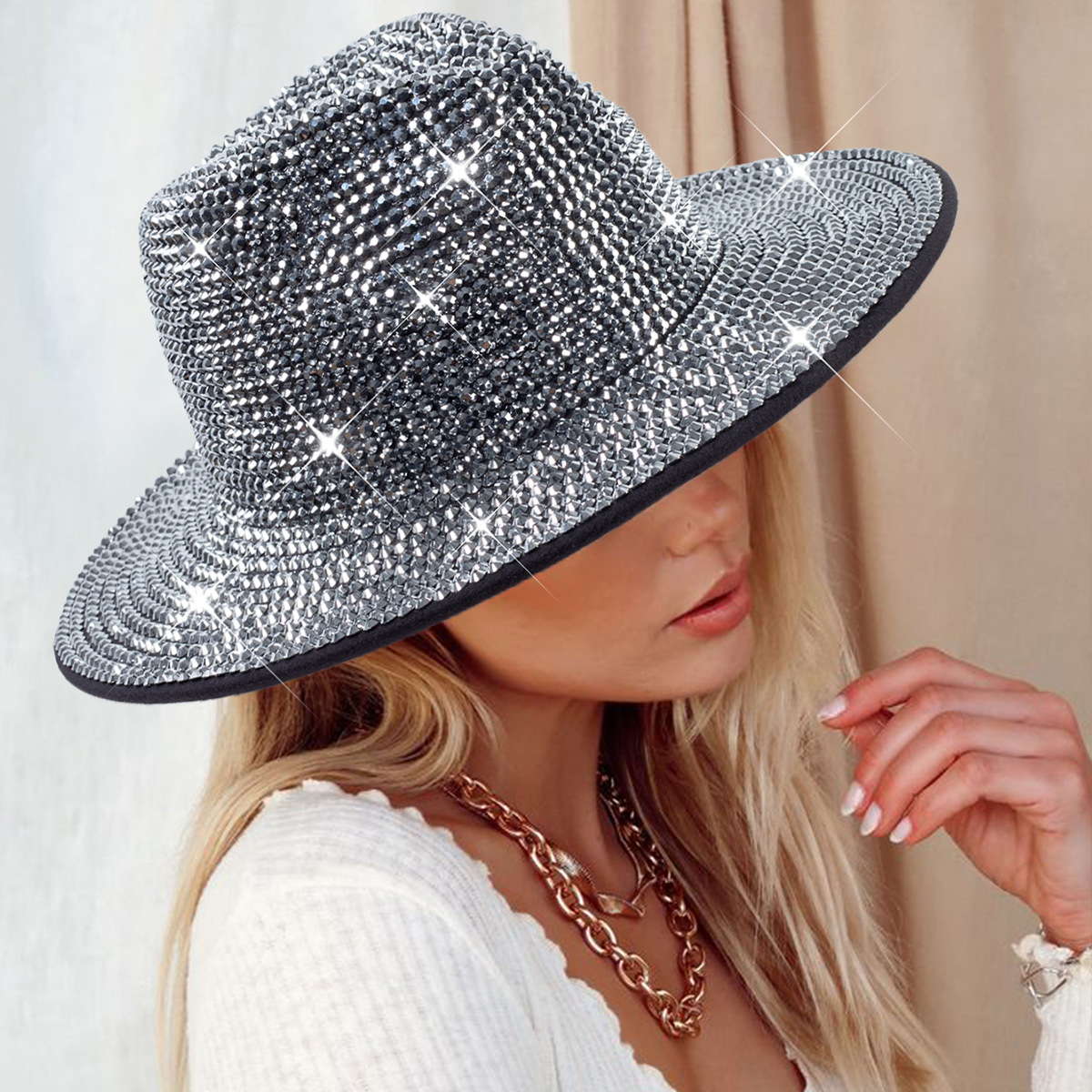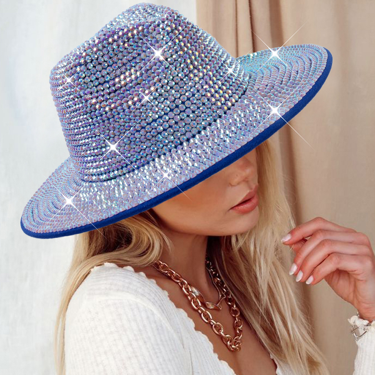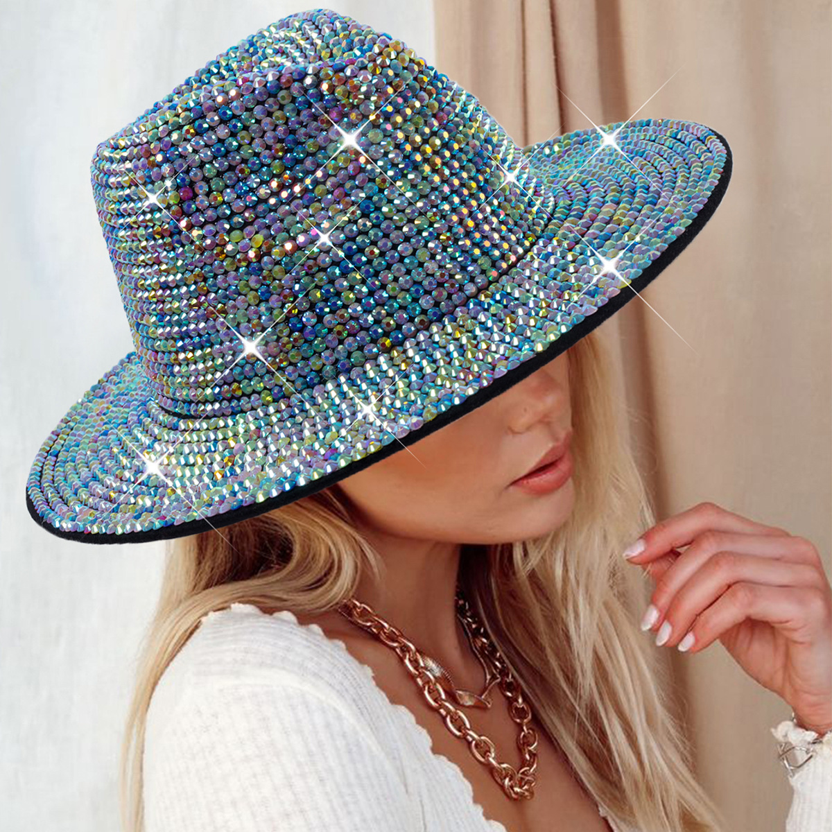 Diamante transfronterizo sombrero de vaquero rhinestone brillante láser sombrero fiesta de baile rendimiento diamante sombrero de jazz