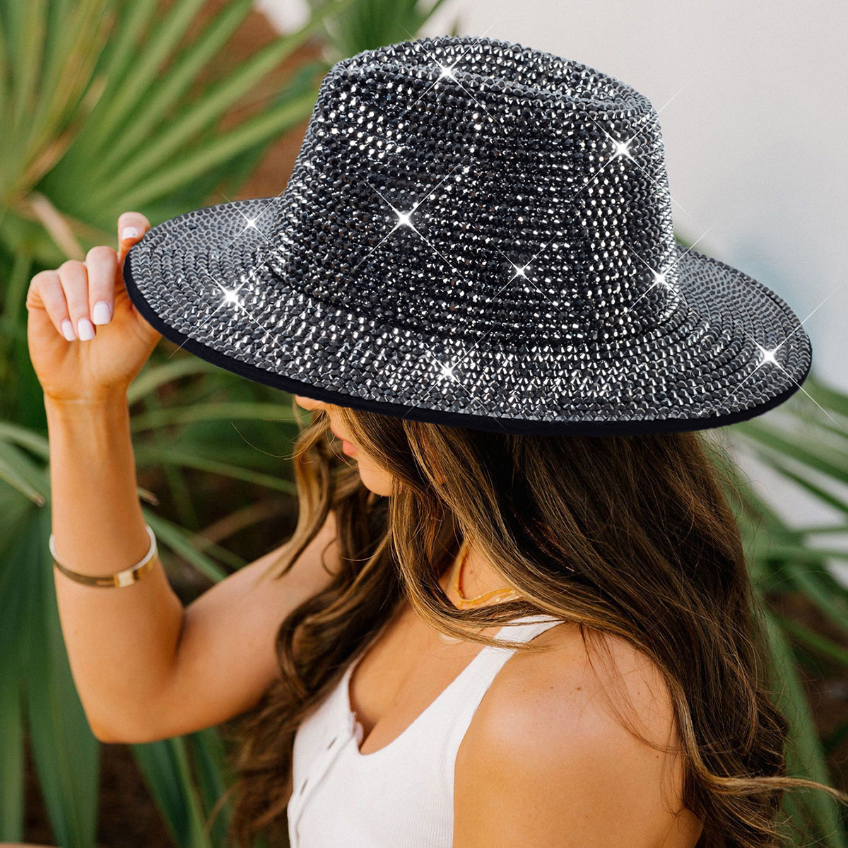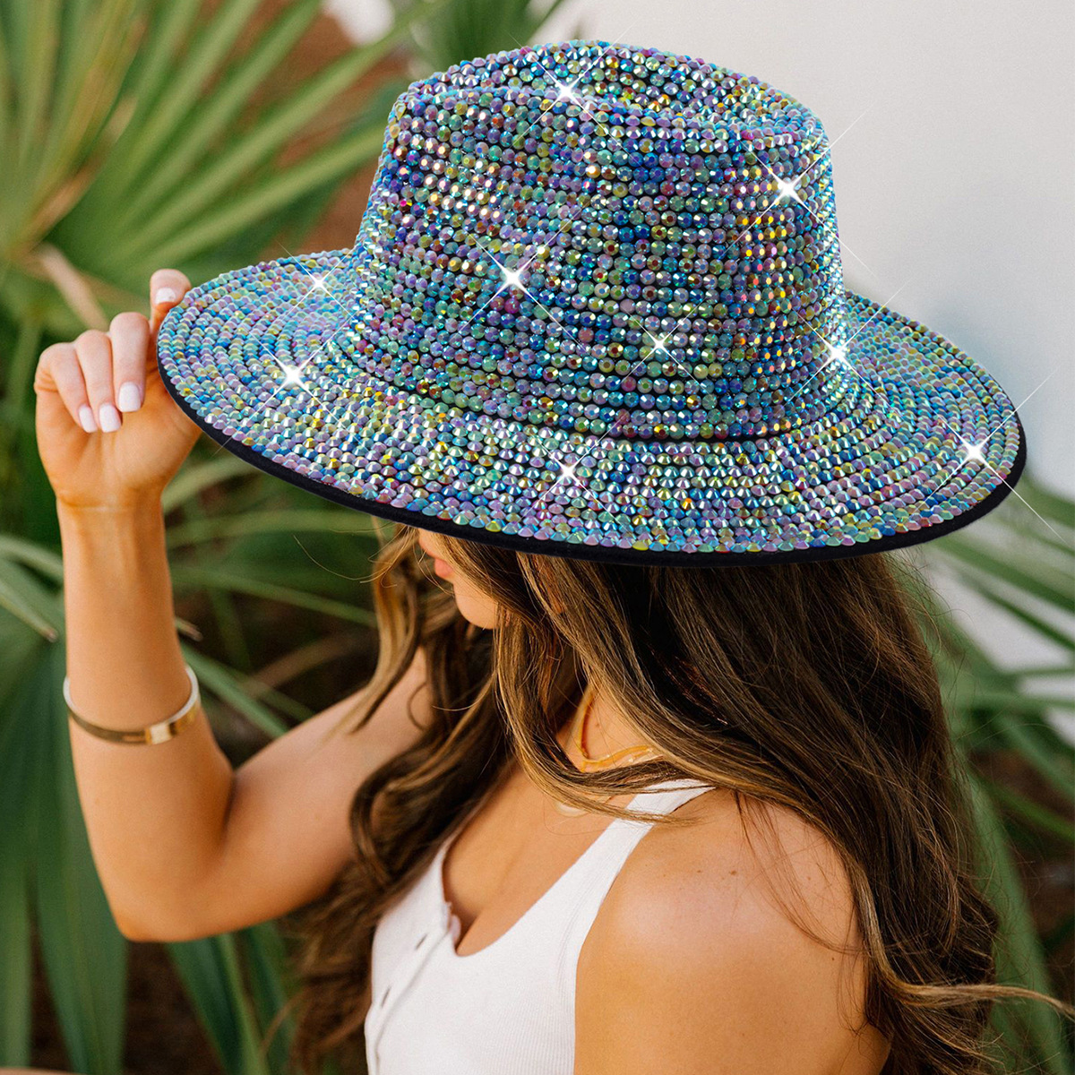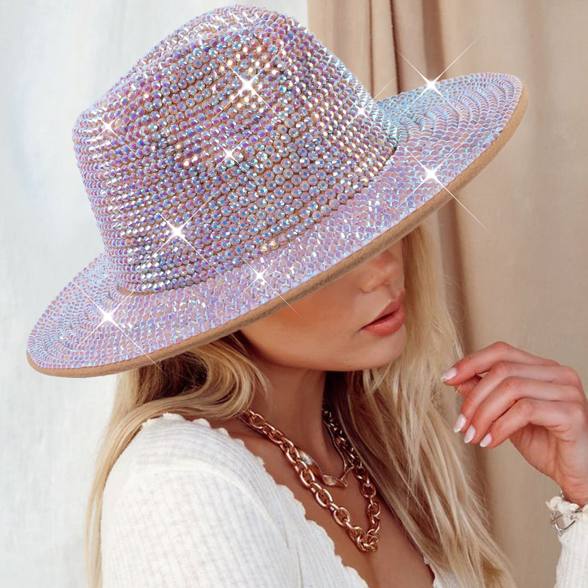 Diamante transfronterizo sombrero de vaquero rhinestone brillante láser sombrero fiesta de baile rendimiento diamante sombrero de jazz
