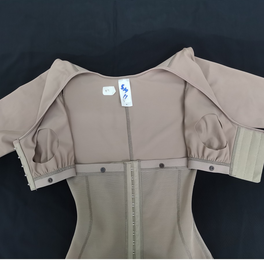 Body de manga larga de spandex y nailon transfronterizo con copas, tela reforzada postoperatoria y posparto para compresión postparto y postoperatoria.
