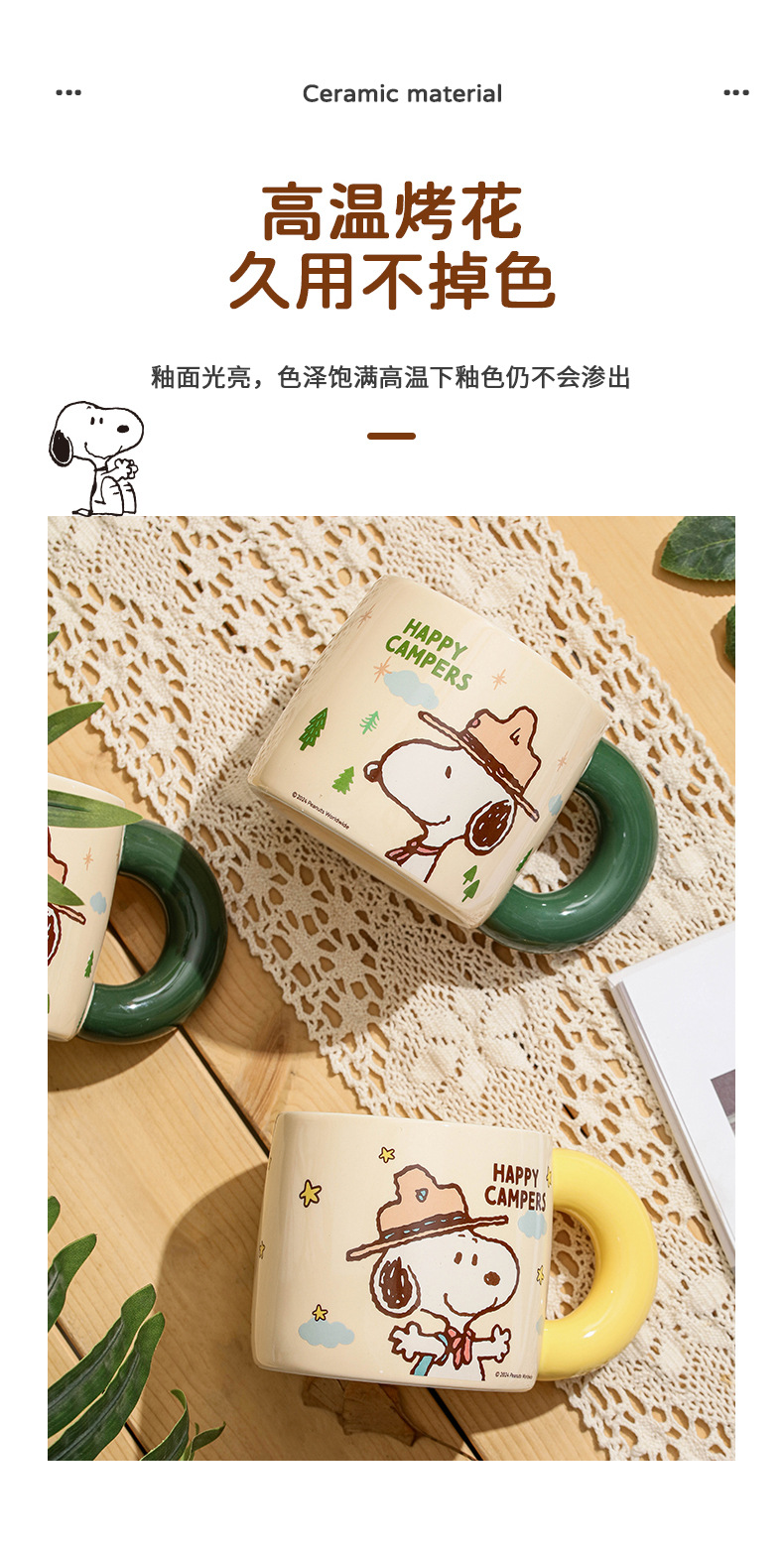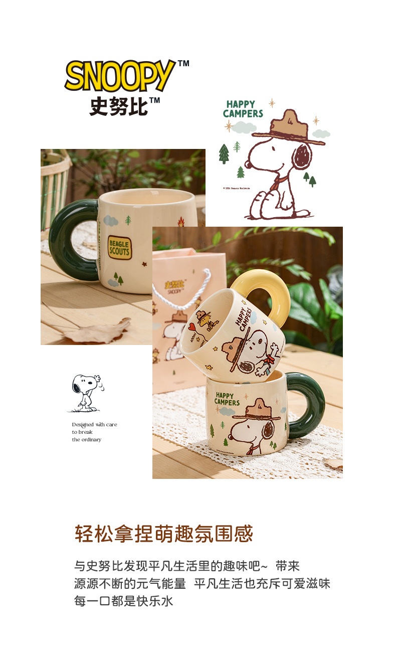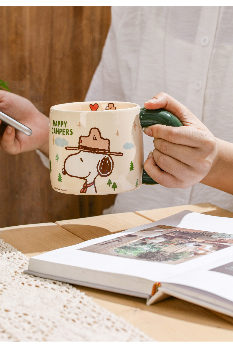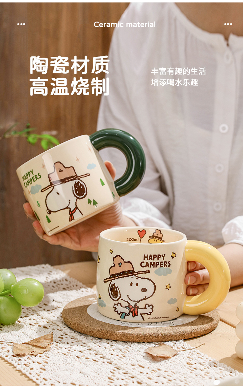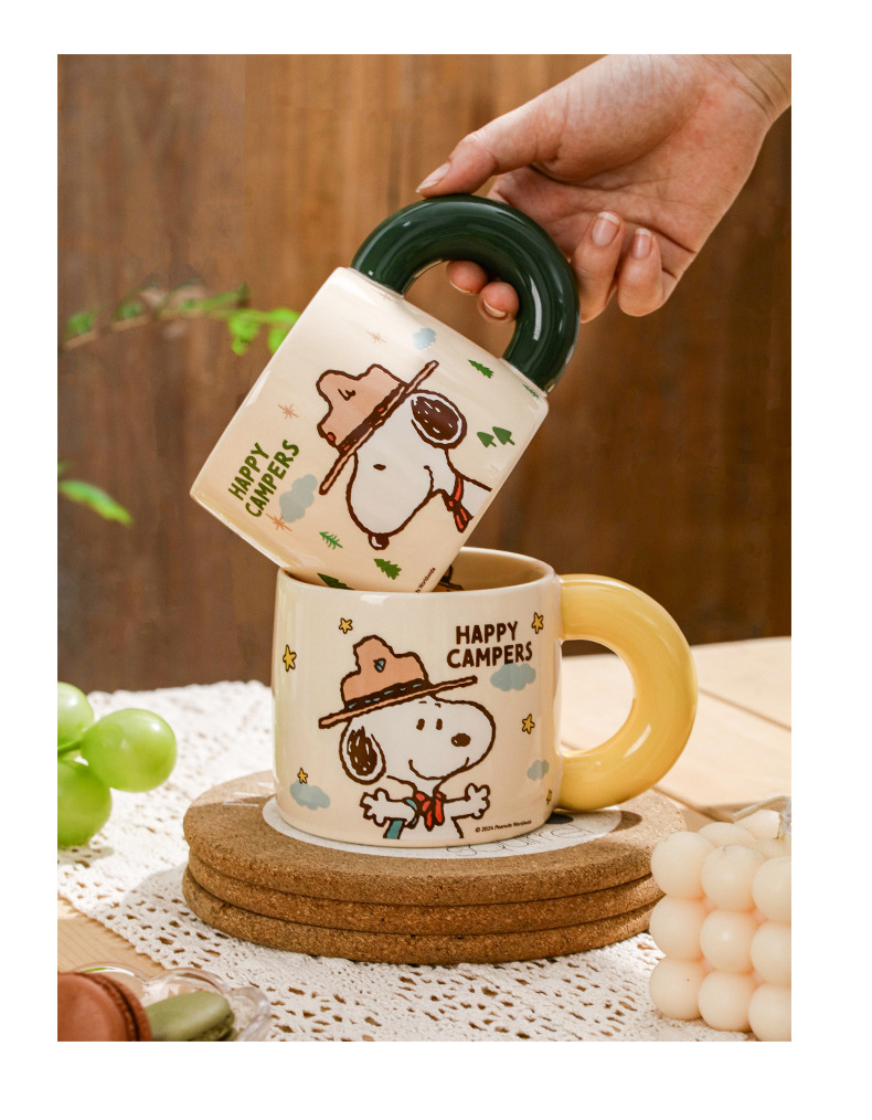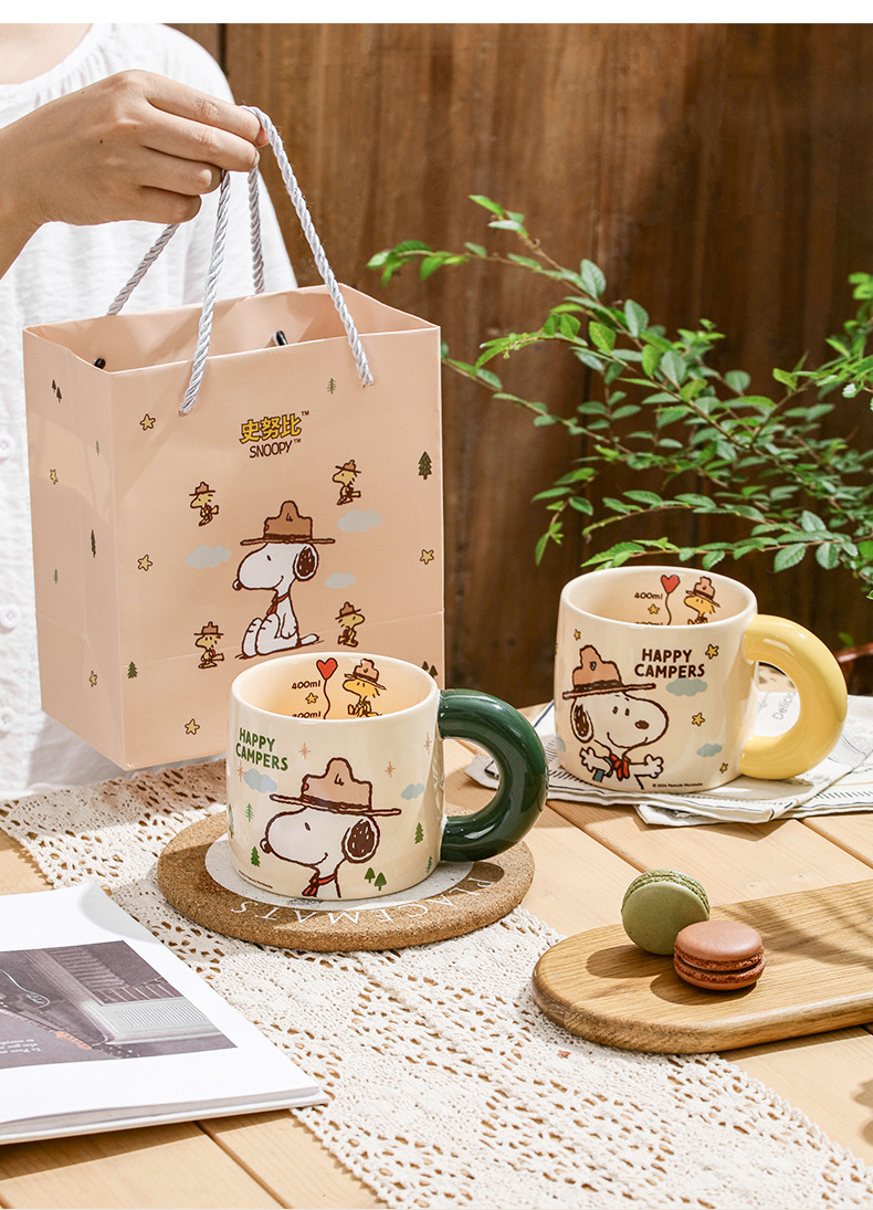 Snoopy Outdoor Series Taza de cerámica Taza de bebida de leche de desayuno de dibujos animados lindo Bolsa portátil de alto valor