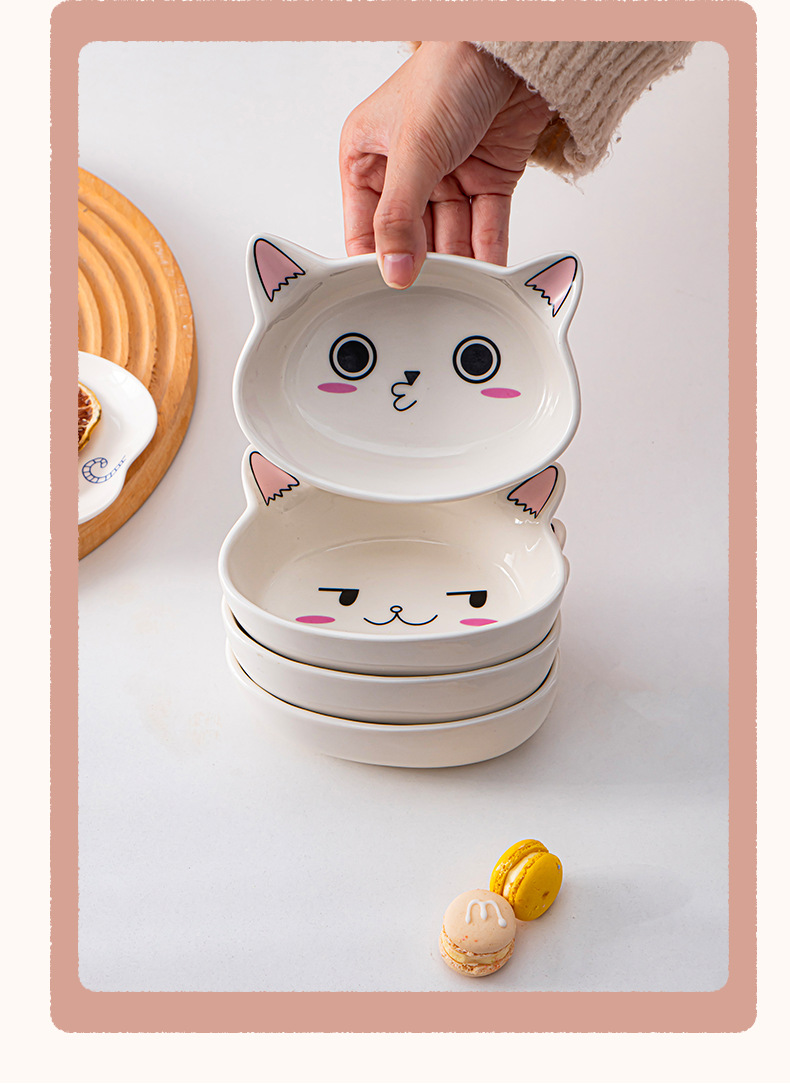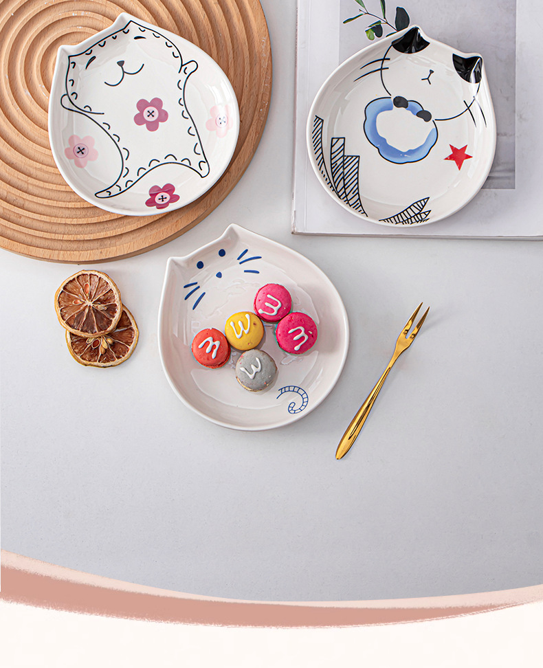 Creativo gatos de cerámica adorable modelado platos de frutas ensalada frías nueces platos cubiertos al por mayor