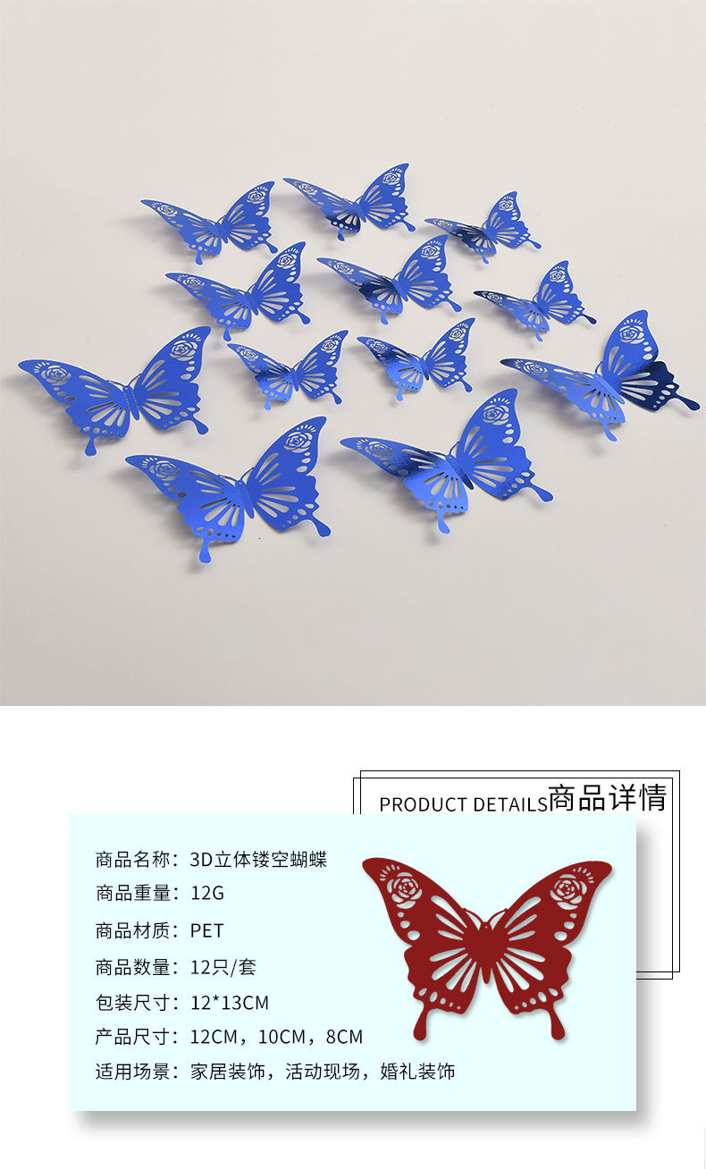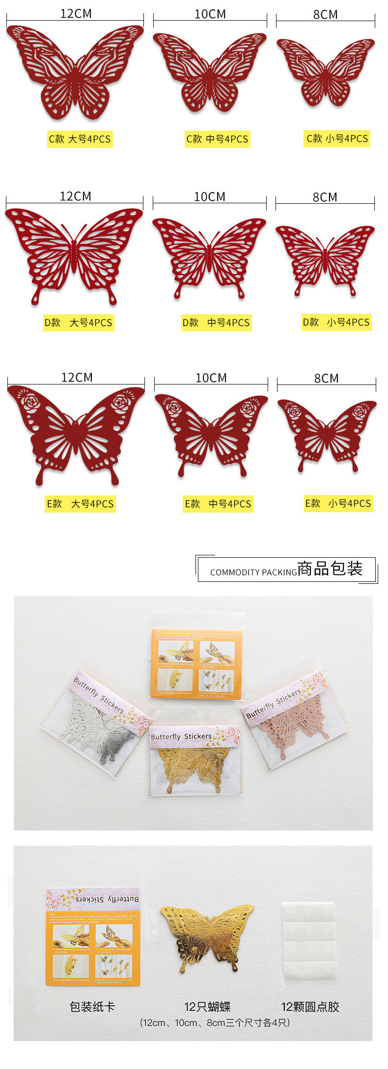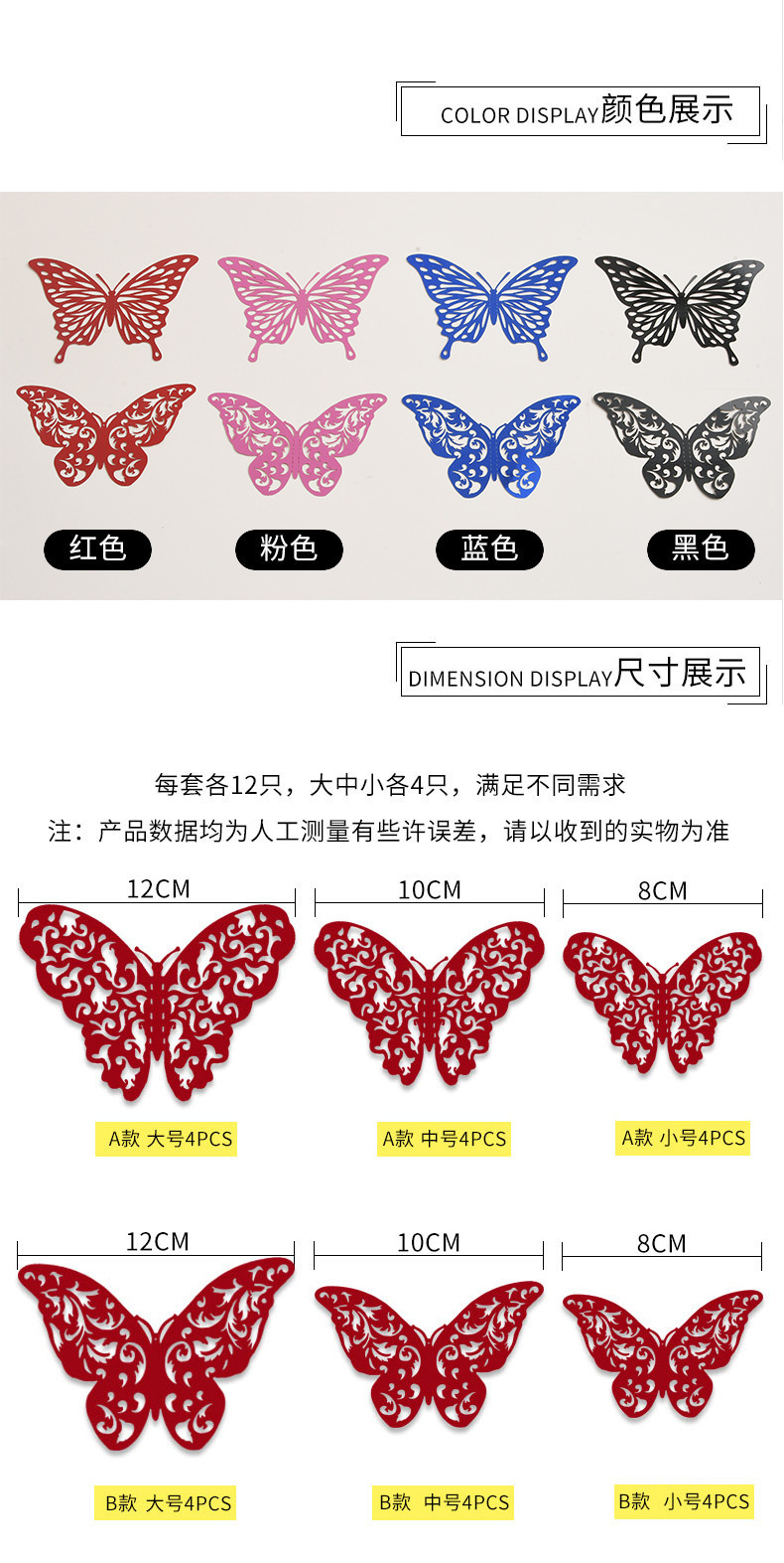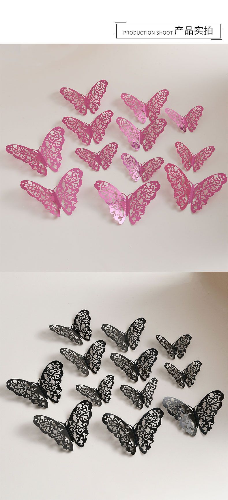 Amazon negro 3D estereoscópico hueco mariposa pegatinas de pared sala de estar diseño de pared festivales decoración de boda pegatinas lotes