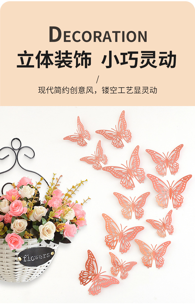 Pegatinas de pared de mariposas, pegatinas de mariposas huecas tridimensionales, pegatinas de decoración del hogar minimalistas modernas