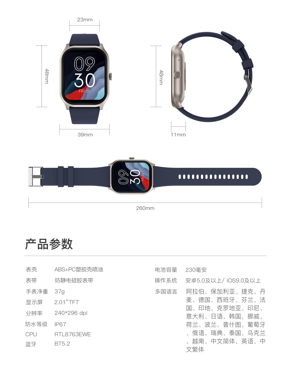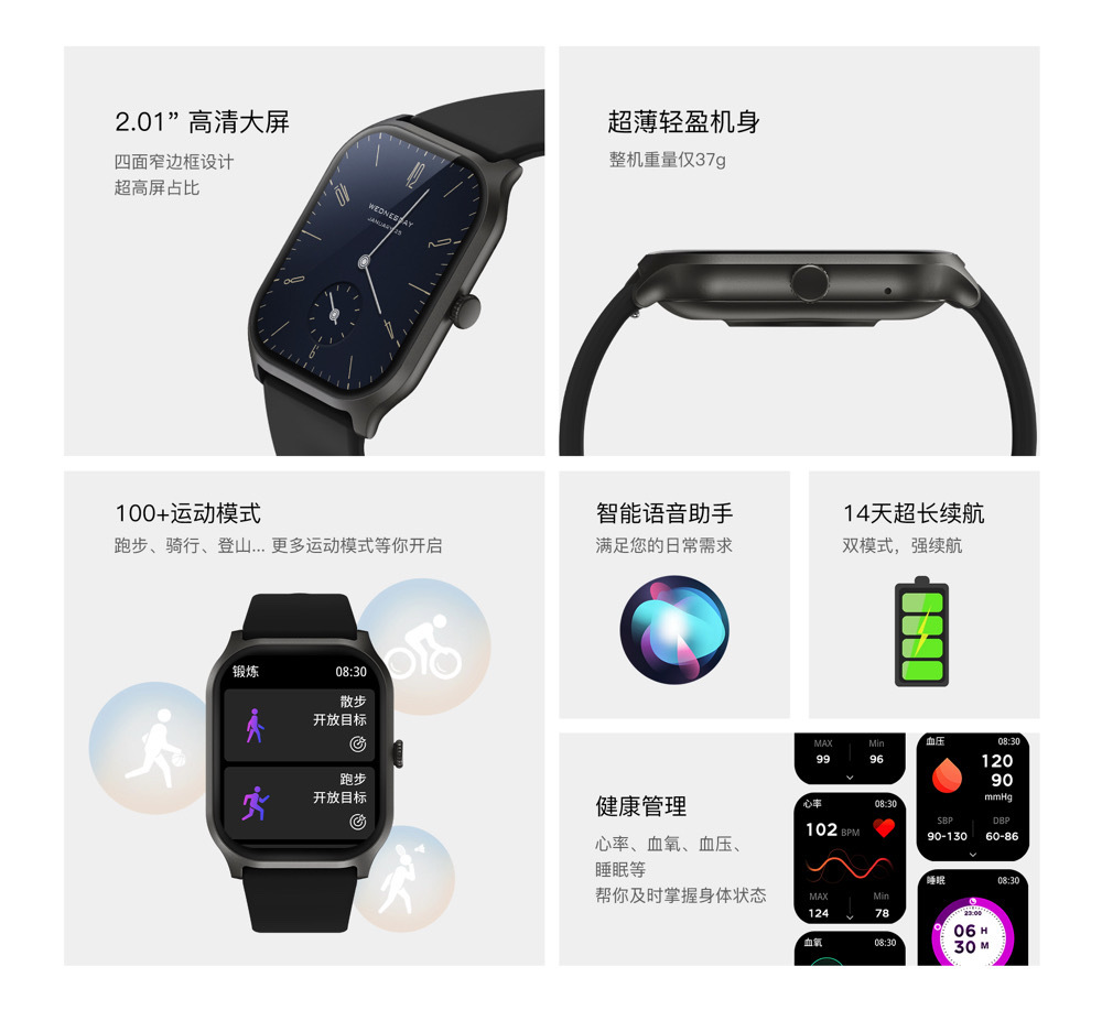 Reloj inteligente transfronterizo ZL77J con llamadas Bluetooth, pantalla de alta definición de 2.01 pulgadas, podómetro, monitorización de ejercicio, frecuencia cardíaca y presión arterial.