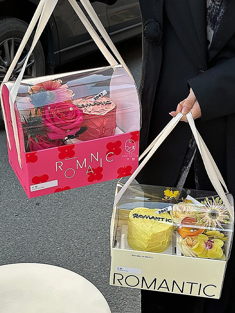 Día de San Valentín 520 rojo portátil caja de pastel de flores regalo de mano caja de regalo de pastel de vacaciones caja de flores transparente