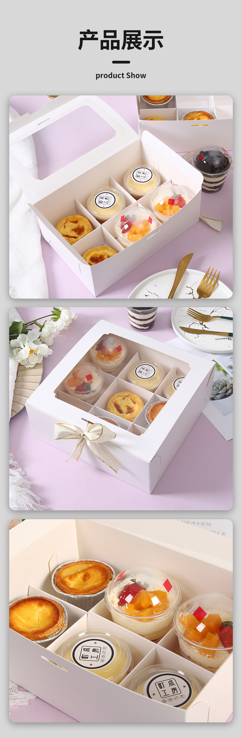 Jiugongge caja de postre taza de papel caja de pastel pastelería occidental caja de embalaje cupcake caja de pastelería de seis rejillas caja de regalo de mano