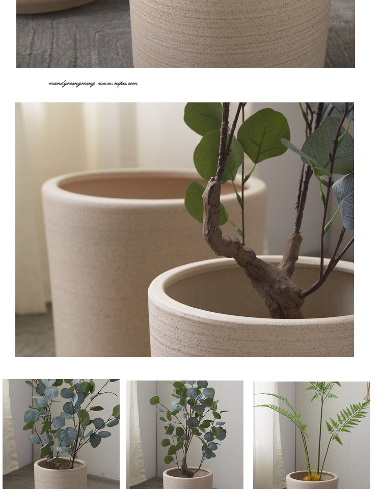 Simple Nordic boca redonda maceta de cerámica piso grande planta verde Decoración Oficina en casa transpirable práctico maceta Decoración